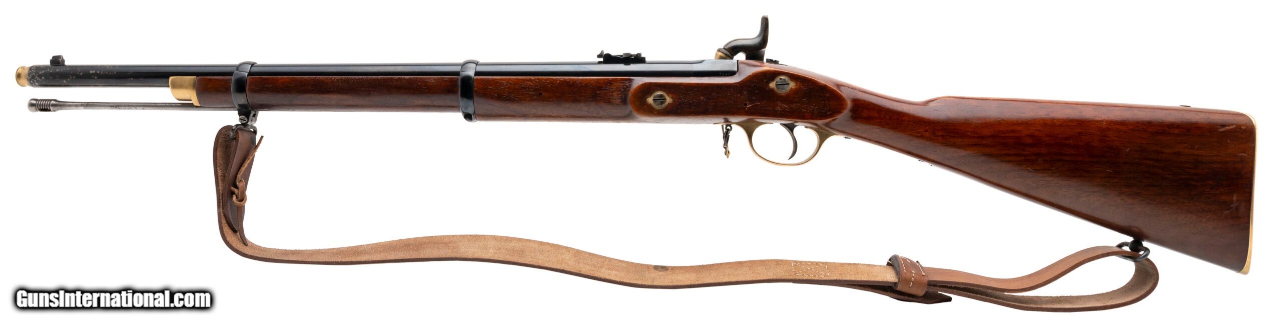 Description: "British made modern replica of a Civil War era percussion carbine. A top quality piece. Shows some light wear, with speckling to the finish near the muzzle. Overall very good condition. SOLD |