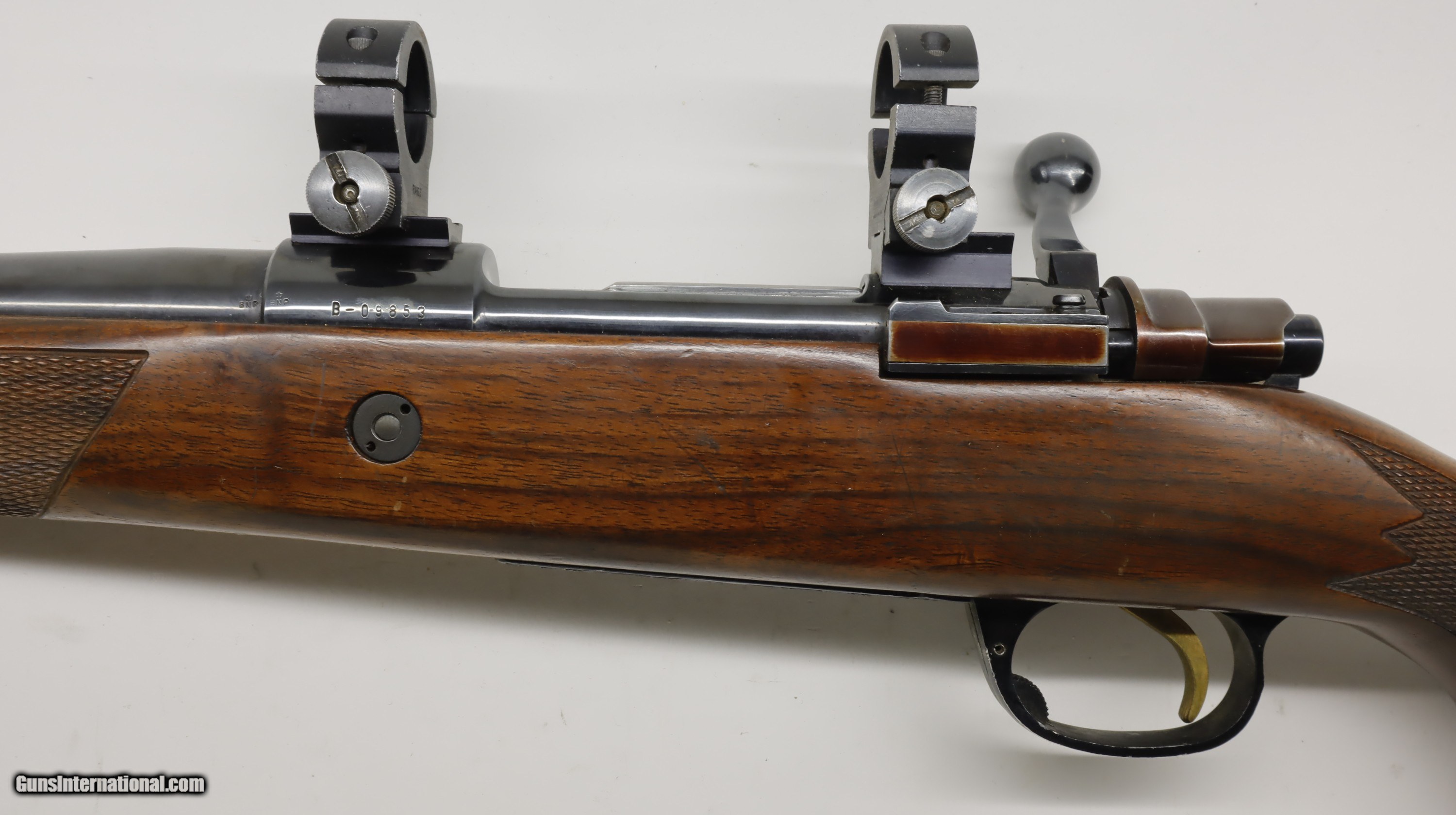Description: Parker Hale deluxe bolt action Mauer actoin rifle, made in Enland. 30-06, 24" barrel. Factory open sights, factory drilled and tapped for a modern scope, comes with the rings and bases as shown. SN is B-068xx. Factory finish on both wood and metal, perfect bore. We will trade for silver and gold. We accept personal check, any certified funds, - or - . We can also take your credit card, +3%. Email me if you would like these pictures sent to you, they will come through bigger and better than on the listing page here. We do offer Layaway. Our standard terms are 25% down, 90 days. Initial deposit is not refundable. Email me with any questions. Please check your local laws to confirm it is legal to own in your state! Buyer pays $60 shipping and insurance in a brand new PLANO hard case to your FFL in the lower 48. AK, HI or PR is extra. I will ship to California, as long as it is legal, NO PROBLEM! All my guns come with a non-firing, 3 day unconditional return privilege, from the day UPS delivers to your dealer. Buyer pays shipping both ways if the gun comes back. Please make sure to make it to your FFL to inspect within the 3 days. I am a licensed FFL, and will include a copy of my FFL with the gun for your dealer’s records. I will ship to a C&R if the gun is eligible. I will ship to California, but you need to confirm the gun is legal where you are, California or other. WE BUY AND CONSIGN GUNS AND GUN COLLECTIONS! We will travel to pick up collections! I am always looking for good clean, old original Winchesters to buy, consign, or trade, especially Pre '64's model 70's and model 54's. WE ALSO TRADE FOR CLASSIC CARS AND TRUCKS! We also trade for gold and silver SOLD Manufacturer: Parker Hale Model: Bolt Barrel Length: 24 Condition: Used |
