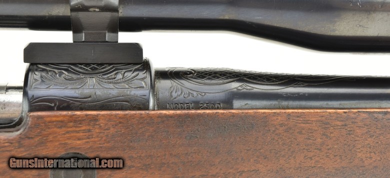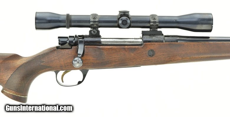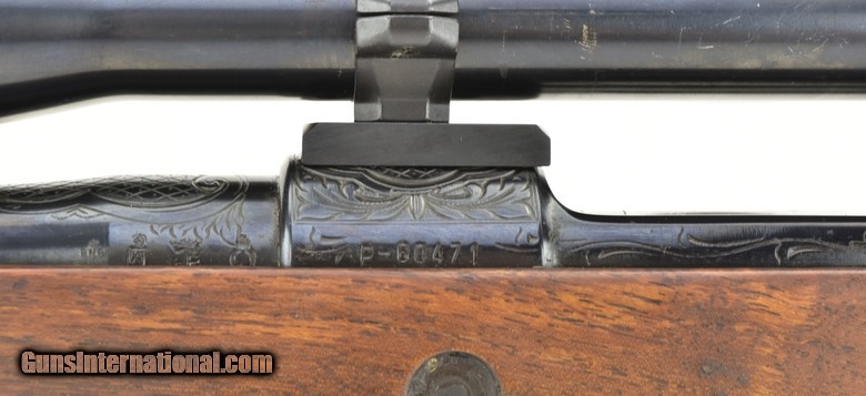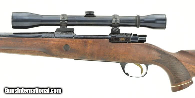 Description: Parker Hale Super-Deluxe .30-06 caliber rifle. English made Mauser action sporter “Super-Deluxe” model with engraved receiver, barrel, floor plate and rings. Has a vintage Weaver K6 scope. Very good condition with light wear.