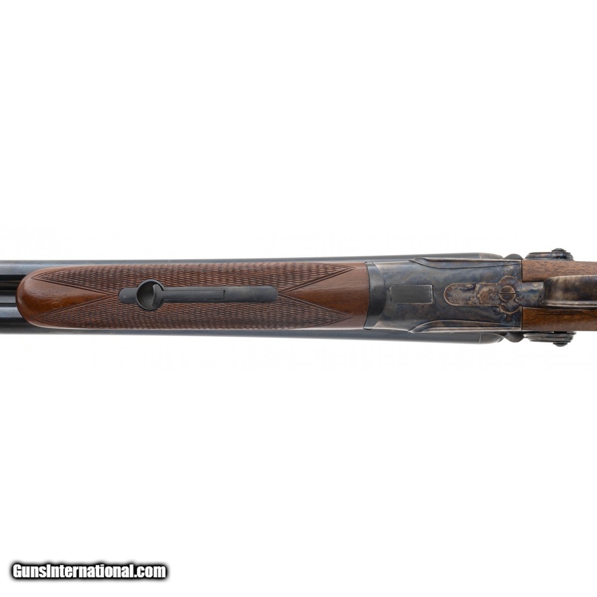 Description: " SN: C5494. Breech loading double rifle with 24"" barrels, express three-leaf sights, checkered walnut stock and case hardened receiver. Overall excellent condition. SOLD |