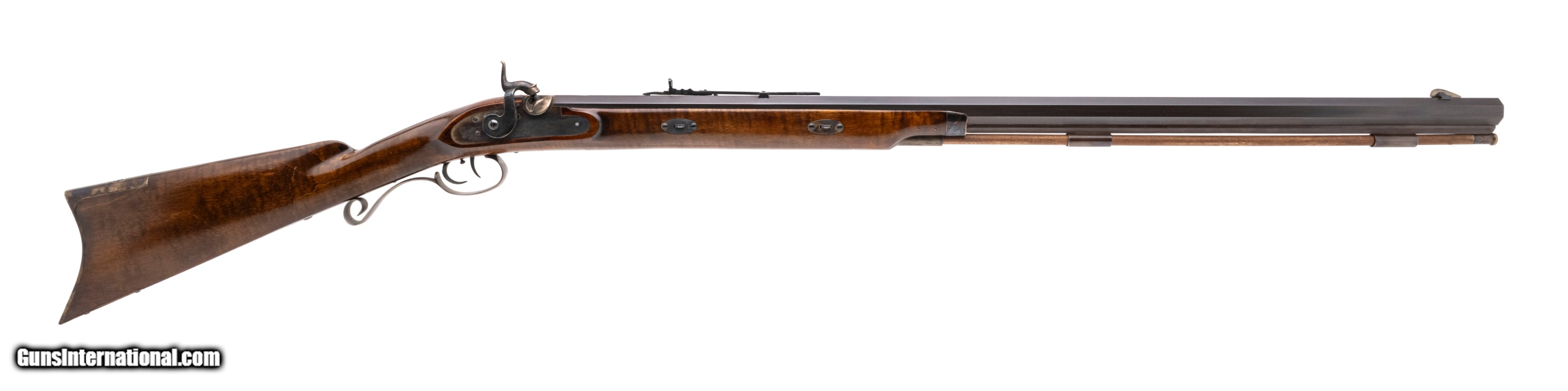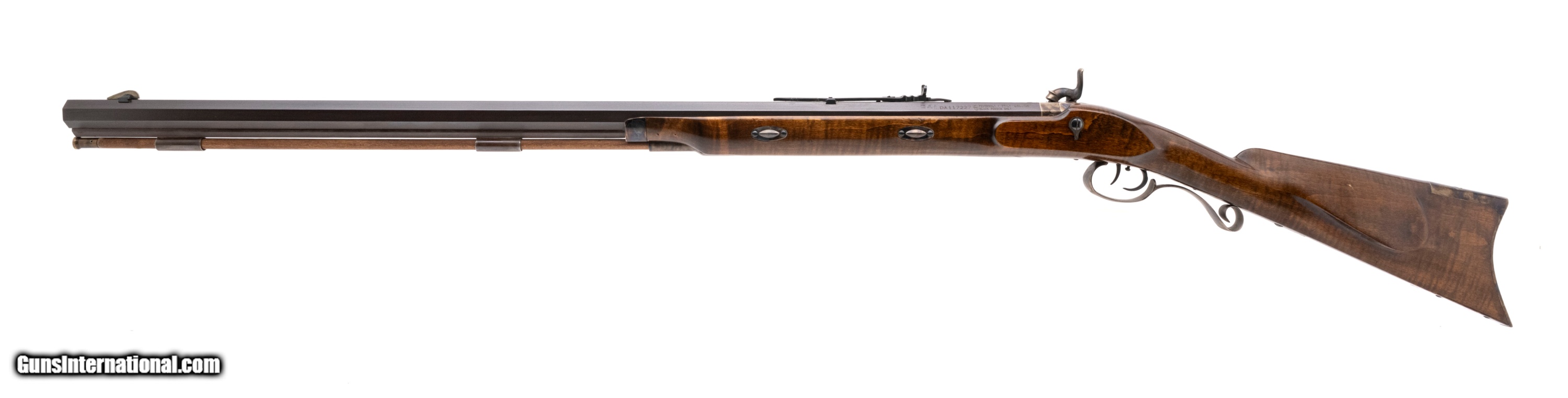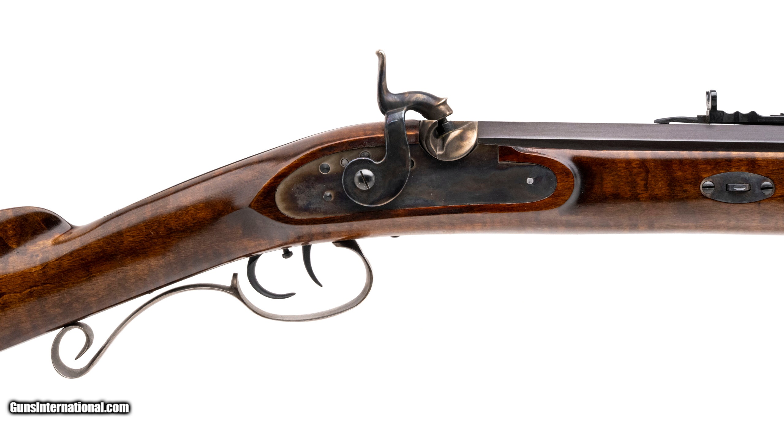 Description: "SN: DA117227. Modern production .54 percussion with a 34"" barrel. Replica black powder percussion rifle in the hawken style. Has double set triggers and a figured maple stock. Overall excellent condition. SOLD |