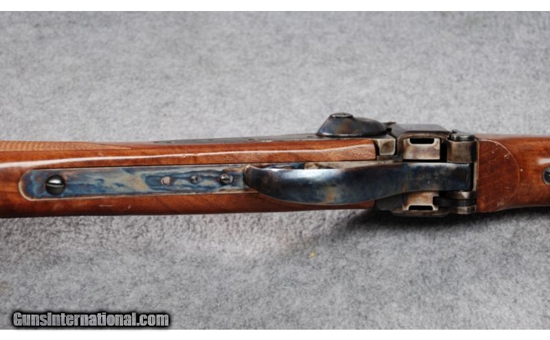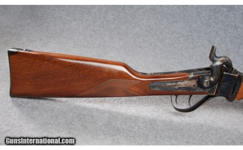 Description: SOLD Caliber Info: .45-70 Gov't Metal Condition: Minor handling marks. Wood Condition: Shows contact and handling marks. Bore Condition: Bright and clean with strong rifling. Barrels: 29" Octagon. Triggers: Double set triggers. Stock: Checkered straight grip Walnut. Stock Dimensions: 14 1/4" LOP Fore End: Checkered Walnut. Butt Pad: Steel Weight: 9 Lbs. 10 Oz. Sights: Buckhorn rear sight. Beaded front blade. Item Location: Hamburg, PA |