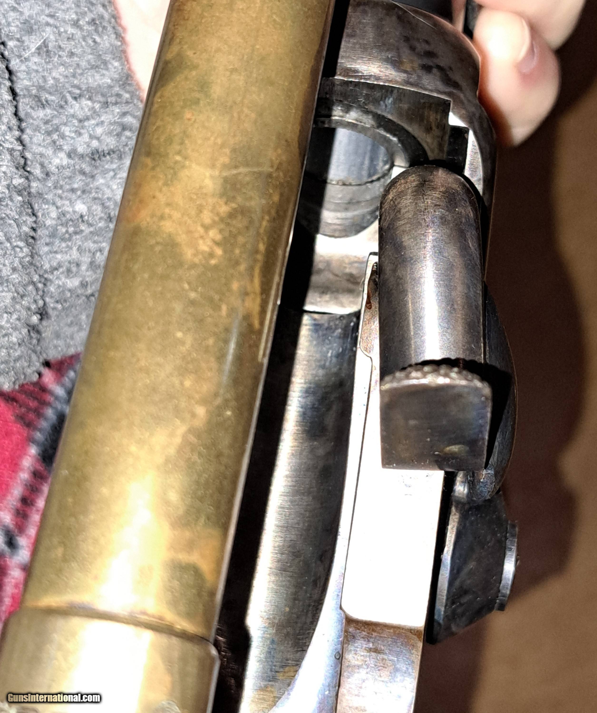 Description: This is an overall very good condition Pedersoli 1859 Berdan Sharps topped with a TASCO 4X15 brass scope with excellent optics. Examination of the action and bore make me think it was set up for reenacting with very little firing. The underside of scope above nipple shows verdigris, probably from snapping musket caps. The factory rear and front sights have been removed. If desired, a new rear sight is easily installed and a new barleycorn front sight can be silver soldered on. The bluing and case colors are in very good condition, with minimal wear. The stocks have only minor scratches. There are three streaks on right side of buttstock, possibly from a cleaning solution. A light oiling will take care of that. There is a small chip out of the right side of forestock at receiver. Set rear trigger to cock. This setup closely resembles an example in the Berdan issued serial number range with long Malcolm scope. See link below. Really cool rifle for Civil War snipers. $2000 + Shipping. Payment terms available. ://rr/s/...colm-scope-in-the-berdan-serial-number-range/ Price: $2,000.00 Contact Seller |