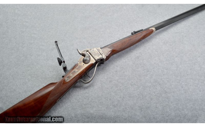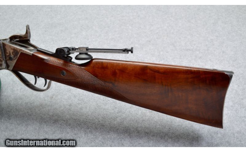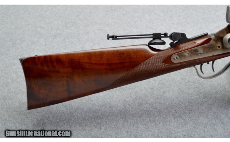 Description: History point: It was June 27, 1874 at Adobe Walls on the Canadian River in the Texas panhandle. Young Billy Dixon and 27 Buffalo hunters were suddenly surrounded by more than 500 Kiowa and Comanche warriors. The Kiowa medicine man told the warriors that his medicine made them invisible to the bullets of the white eyes. When Dixon fired his Sharps sporting rifle and knocked a Kiowa from his horse at 1538 yards (7/8 mile), the Indians departed with haste. SOLD Caliber Info: .45-90 Sharps Metal Condition: Excellent with a few light handling marks Wood Condition: Excellent with a few light handling marks Bore Condition: Excellent, bright and sharp Barrels: 32-Inch octagon barrel Triggers: Double trigger Stock: Straight hand walnut stock Stock Dimensions: LOP 14 Inches Fore End: Tapered thin walnut with checkering and metal cap/trim Butt Pad: Metal butt plate Weight: 10 Lbs. 6 Oz. Sights: Front Ghost ring with mid adjustable buckhorn and installed top tang Lee Shaver¿s Soule sight. Item Location: Farmington, UT |