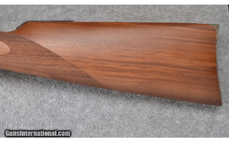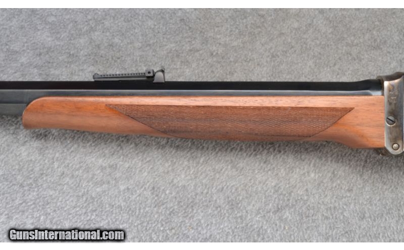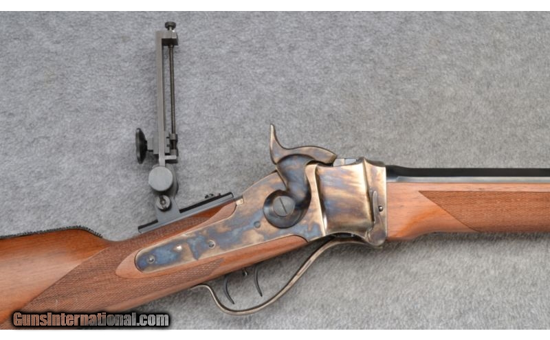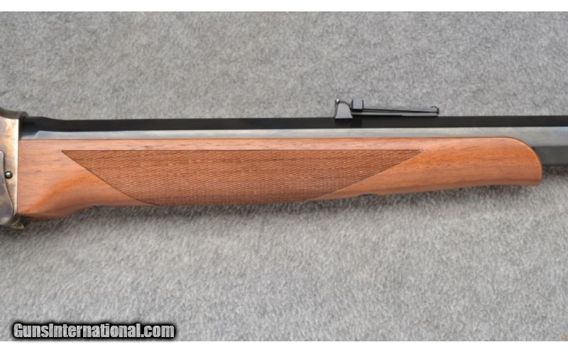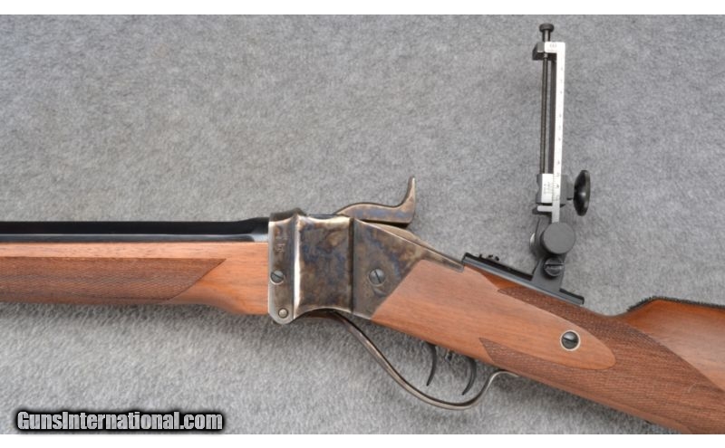 Description: Excellent throughout complete with target sights and box. SOLD Manufacturer: S/N SH35XXX Caliber Info: .45-70 Gov't. Metal Condition: Excellent Wood Condition: Excellent Bore Condition: Excellent Barrels: 32" Octagon Triggers: Double Set Stock: Checkered Walnut - Straight Grip Stock Dimensions: 14" LOP Fore End: Checkered Walnut Butt Pad: Case Colored Steel Weight: 11 LB Sights: Globe Front with Spirit Level - Tangent Adjustable Rear Notch - Tang Mounted Vernier Rear Aperture Item Location: Wheeling, WV |