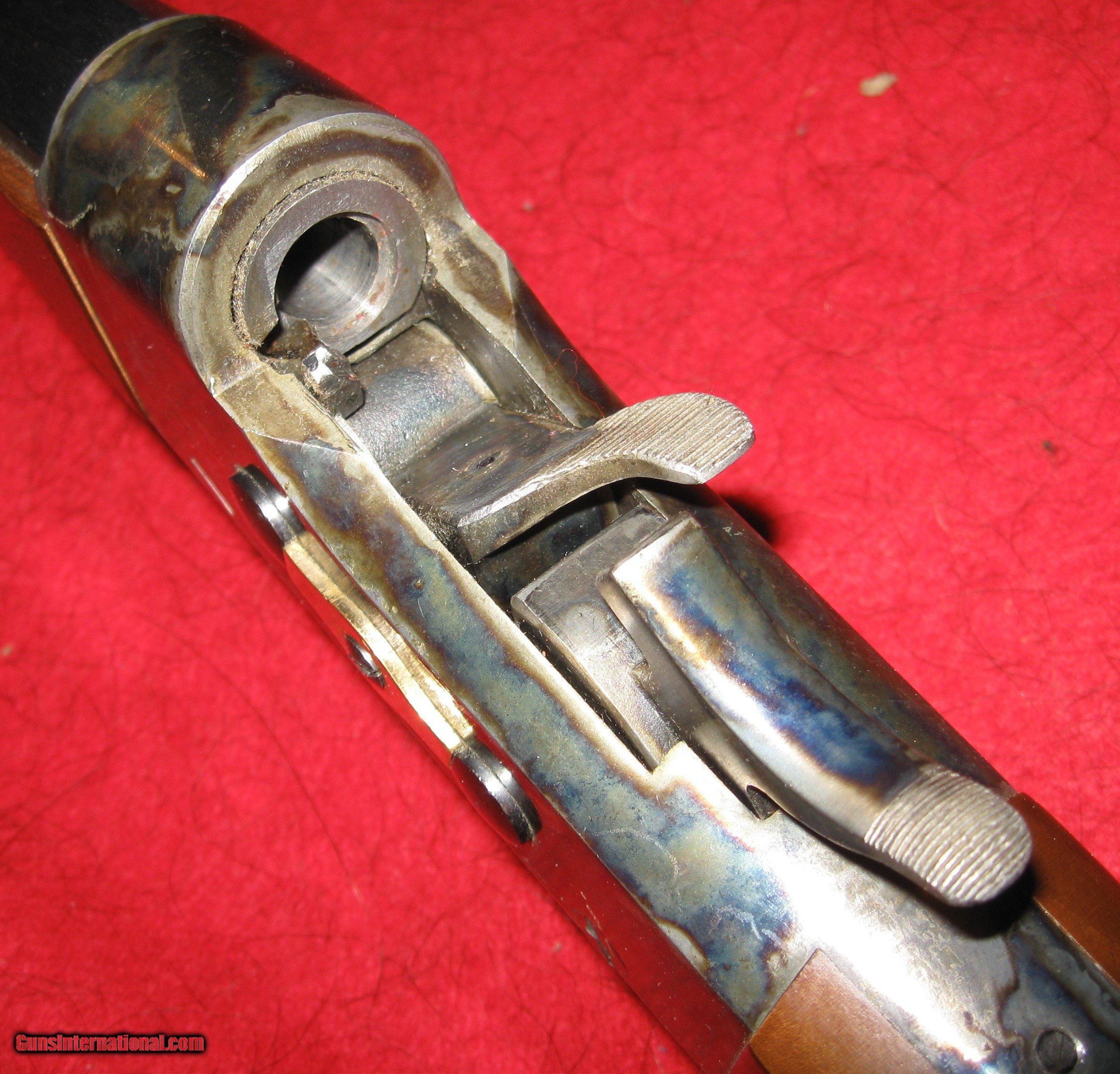 Description: THIS PEDERSOLI ROLLING BLOCK CARBINE IS CHAMBERED IN 45-70. I BELIEVE IT IS AN EARLY MODEL AS IT IS SERIAL # B4 , IT IS IN EXCELLENT CONDITION WITH AN EXCELLENT BORE. THE BARREL IS A 22" LONG HEAVY OCTAGONAL CONTOUR ABOUT 1 1/8" ACROSS THE FLATS. THE RIFLE WEIGHS JUST OVER 11 POUNDS DUE TO THE HEAVY CONTOUR BARREL WHICH KEEPS RECOIL WELL DOWN WITH THE 45-70 LOADS. THE SIGHTS ARE AN INTERCHANGEABLE INSERT FRONT SIGHT, CURRENTLY WITH AN APERTURE TYPE INSERT AND AN APERTURE REAR SIGHT WITH A THUMBWHEEL FOR ELEVATION ADJUSTMENT THAT I HAVE NOT SEEN ON ANY OTHER PEDERSOLI. THE REAR SIGHT IS DRIFT ADJUSTABLE FOR WINDAGE. THE BACKSTRAP IS PREDRILLED FOR A FLIP UP TANG APERTURE SIGHT. I ONLY SHOT IT OUT TO 200 YARDS SO NEVER NEEDED ONE. IT'S MY FAVORITE SINGLE SHOT THAT I USED TO SHOOT IN OFFHAND MATCHES BUT 11 POUNDS IS TO HEAVY FOR ME SINCE I HIT 71 YEARS OF AGE! THERE ARE A FEW STOCK DINGS AND THE REAR ACTION SCREW SLOT IS LIGHTLY MARRED (SEE PICTURES). I ONLY FIRED LEAD BULLETS SO THE BORE IS PRISTINE AND IT SHOOTS GREAT. Rifle Caliber: .45-70 Government Manufacturer: PEDERSOLI Model: ROLLING BLOCK CARBINE Serial Number: B4 Barrel Length: 22 Condition: EXCELLENT Metal Condition: EXCELLENT -LIGHTLY MARRED REAR ACTIO SCREW Wood Condition: EXCELLENT A FEW MINOR DINGS Bore Condition: EXCELLENT Barrel Type: OCTAGONAL 1 1/8" ACROSS FLATS Action: ROLLING BLOCK Triggers: SINGLE Stock: ORIGINAL WITH A FEW LIGHT DINGS Fore End: ORIGINAL Butt Pad: ORIGINAL BRASS Finish: BLUE BARREL CASE COLORED ACTION BRASS HARDWARE Weight: APPROX 11# Sights: FRONT SIGHT WITH CHANGEABLE APERTURE INSERT, APERTURE REAR ADJUSTABLE WITH ELEVATION WHEEL Extras: STOCK AMMO CARRIER Price: $1,395.00 Shipping: $75.00 Buy Now Contact Seller |