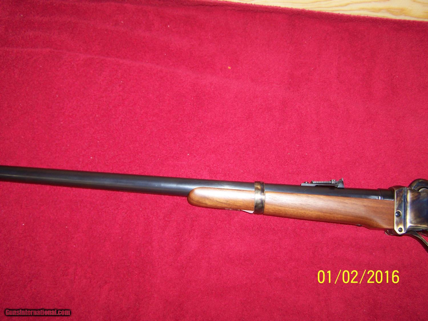Description: Pedersoli 1859 sharps Cavalry carbine. 22" barrel Length -with patch box. New just removed from box never fired. Comes with the box.Has a removable vent hole for cleaning plus wrench for the removal.Sale will be will be price plus shipping. SOLD Manufacturer: Pedersoli Model: 1859 sharps cavalry carbine Serial Number: SH36496 Caliber Info: 54 Condition: LNIB Metal Condition: new Wood Condition: new Bore Condition: new Barrels: single Barrel Type: Round Action: Single Shot Triggers: single |