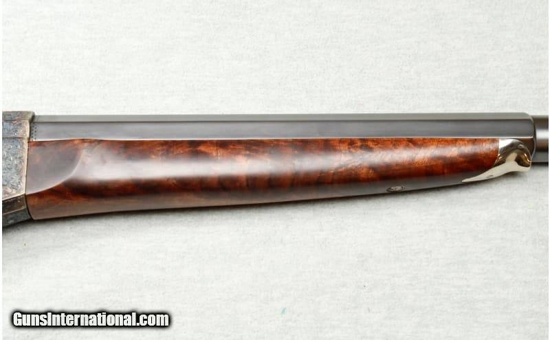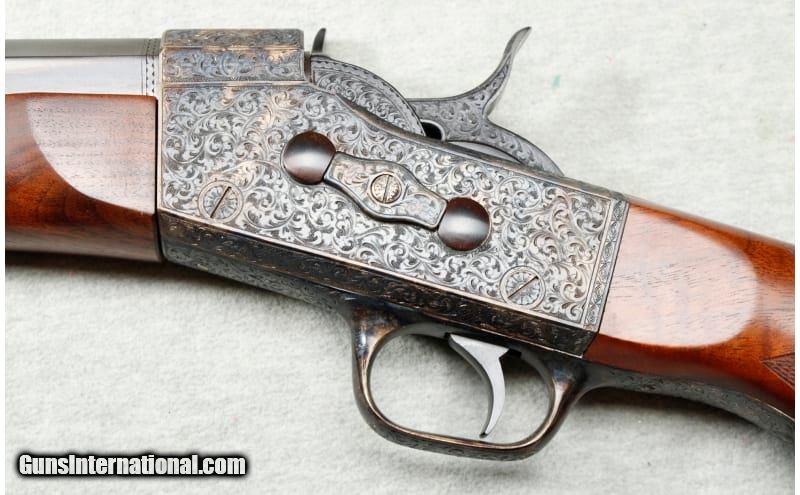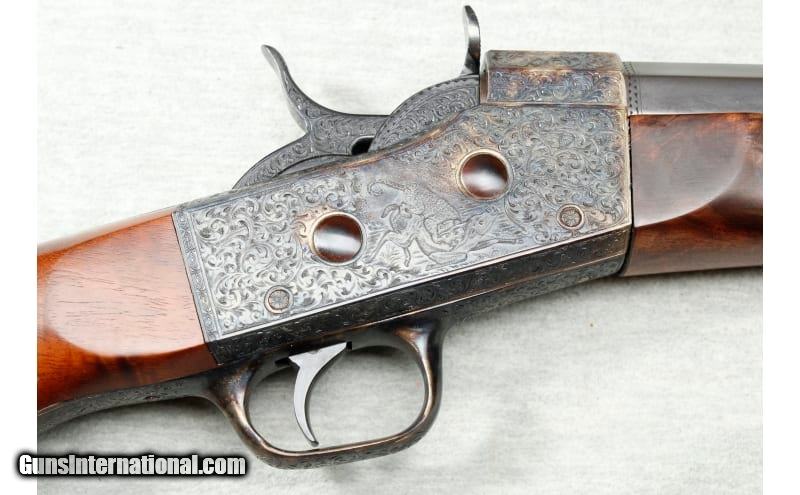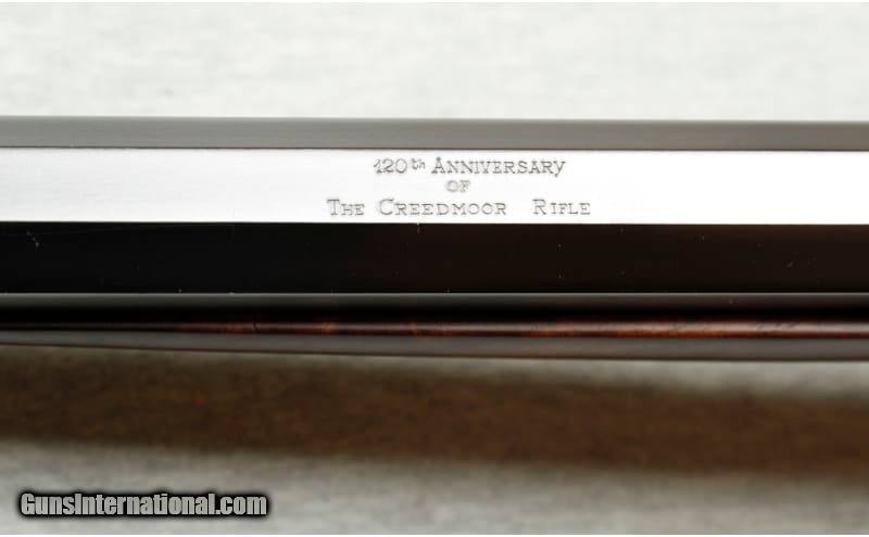 Description: Pedersoli Creedmoor made to honor the 120th anniversary of the Creedmoor rifle. This is a striking piece which is close to perfect except for a chip in the stock which is shown in the pictures. Beautiful wood, engraved, case hardened receiver, 33 3/4" heavey barrel and comes with the original box. .45-70 Government SOLD Metal Condition: very good Wood Condition: very good - chip in stock Bore Condition: bright Barrels: 33 3/4" heavy barrel Stock Dimensions: 15 Fore End: smooth wood Butt Pad: metal Weight: 11 pound 8 oz Sights: hooded front sight Item Location: La Vista, NE |