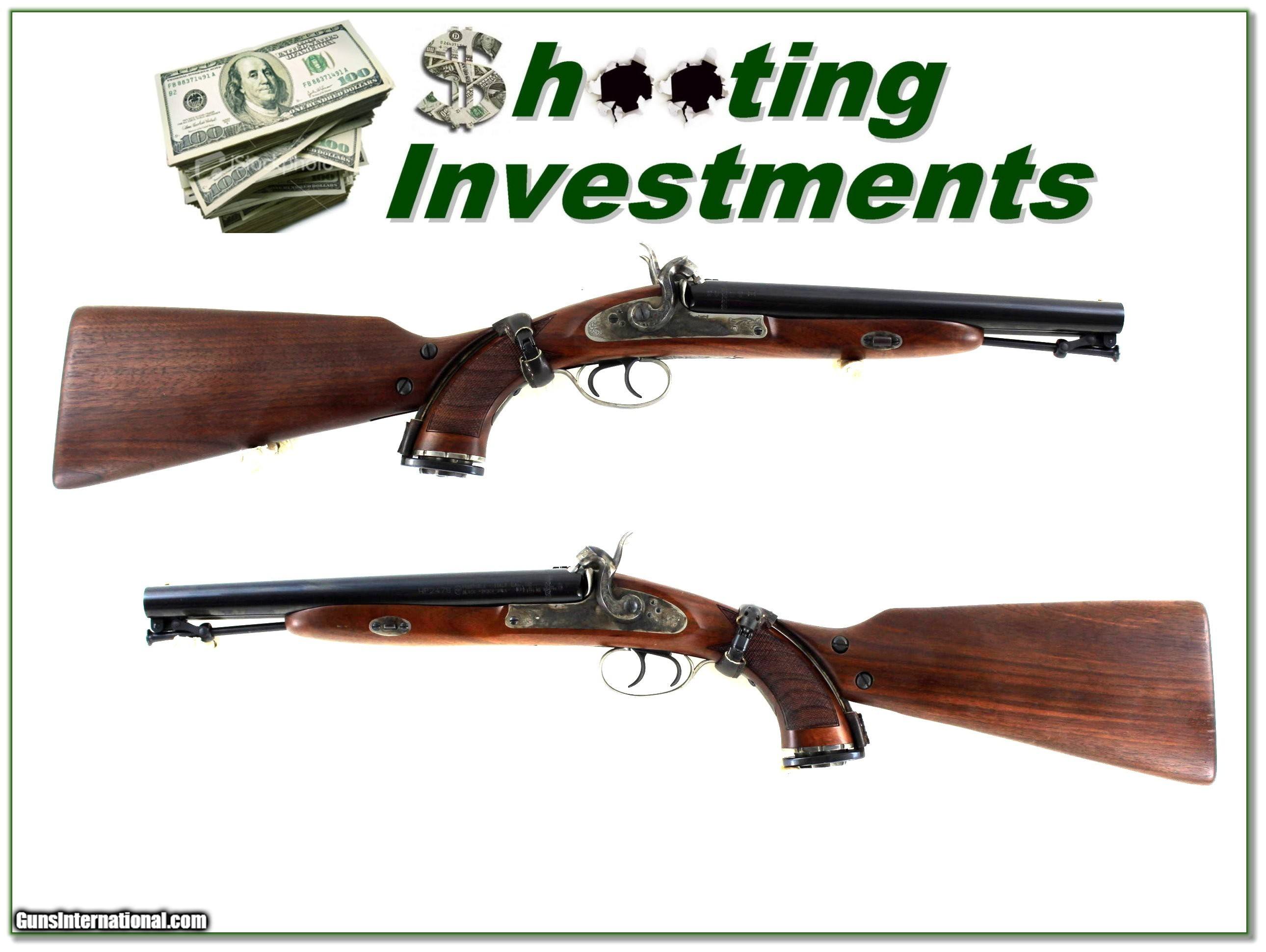 Description: This is s like new Pedersoli Howdah SxS Black Powder Pistol in 58 Caliber. It has the optional and removable stock. This is a reproduction of the SxS pistol used in Africa a lion gun. I am selling this one on consignment and as such lay-a-way can’t be used. It does of course have the standard 3-day inspection. Shipping and insurance is $49. Please email me with any questions or larger pictures. (Consign your quality firearms with Shooting Investments for only 12%! Let me know if you have any you would like to sell!) 24-bb01 Payment: Payment is by Money Order, Cashier’s Check or Personal Check. I can now also accept Credit Cards (MasterCard, Visa, Discover & American Express) with a 3% convenience fee. Shipping: The shipping charge will be listed in each description. It is $49 for most firearms. Some heavy guns or those insured for over $2000 will be higher. Shipments to Alaska and Hawaii are higher because air shipment is required. Most firearms are shipped on Tuesday and Thursday and usually in 5 days of receipt of payment. We package all shipments carefully and insure them. Optics are shipped Priority Mail and most other non-firearm shipments are shipped First Class. Returns: Our return policy is simple. If for any reason you are not pleased with your purchase, you may return your item for a full refund of purchase price. Ammunition cannot be returned. It is important to us that you are happy. Guns cannot be fired or dissembled before returning them and they must be returned in the same condition as received. Notification of a return must occur within 3 days of receipt at your dealer. Shipping, convenience and dealer fees are not refundable and are the responsibility of the buyer. Lay-a-way: If needed, we offer a 60 day lay-a-way option on most firearms. It is 1/3 now, 1/3 in 30 days and 1/3 in 60 days. Lay-a-way firearm sales are final and cannot be returned. If a lay-a-way is not completed the first payment cannot be refunded. Consigning your firearms with Shooting Investments: We will help you get top dollar for your firearms. While most local guns shops charge 20% or more, our fee is only 12% with a minimum of $75. At your local gun shop it might take months to sell. Selling on-line provides instant access to thousands of interested buyers. You won’t find any other on-line dealer willing to sell your firearms for only 12% or listing every gun on 3 separate s. Selling through an House typically costs the seller 15% and the buyer an addition 15% (so 30%) and you have to wait several months to sell and longer to receive funds. If properly priced, we will sell your firearms within a few weeks. Send us an email or give us a call and we’ll explain how easy it is for you to get top dollar. Trading: Trading for us is really just buying your gun to re-sell. If you have a gun you want to trade, please email a picture and we will let you know what we can give for it. You will always get more if we sell it for you on consignment. SOLD |