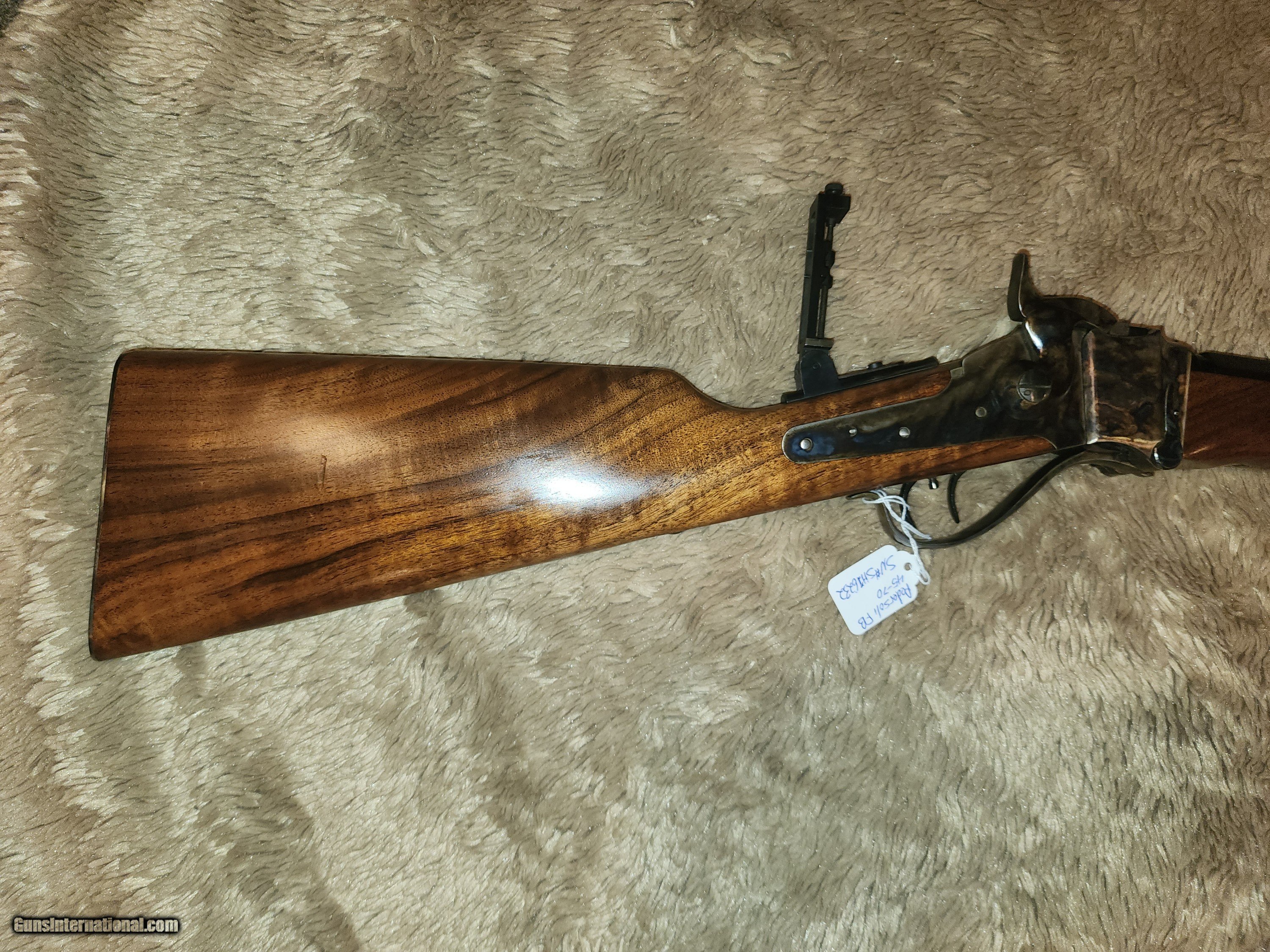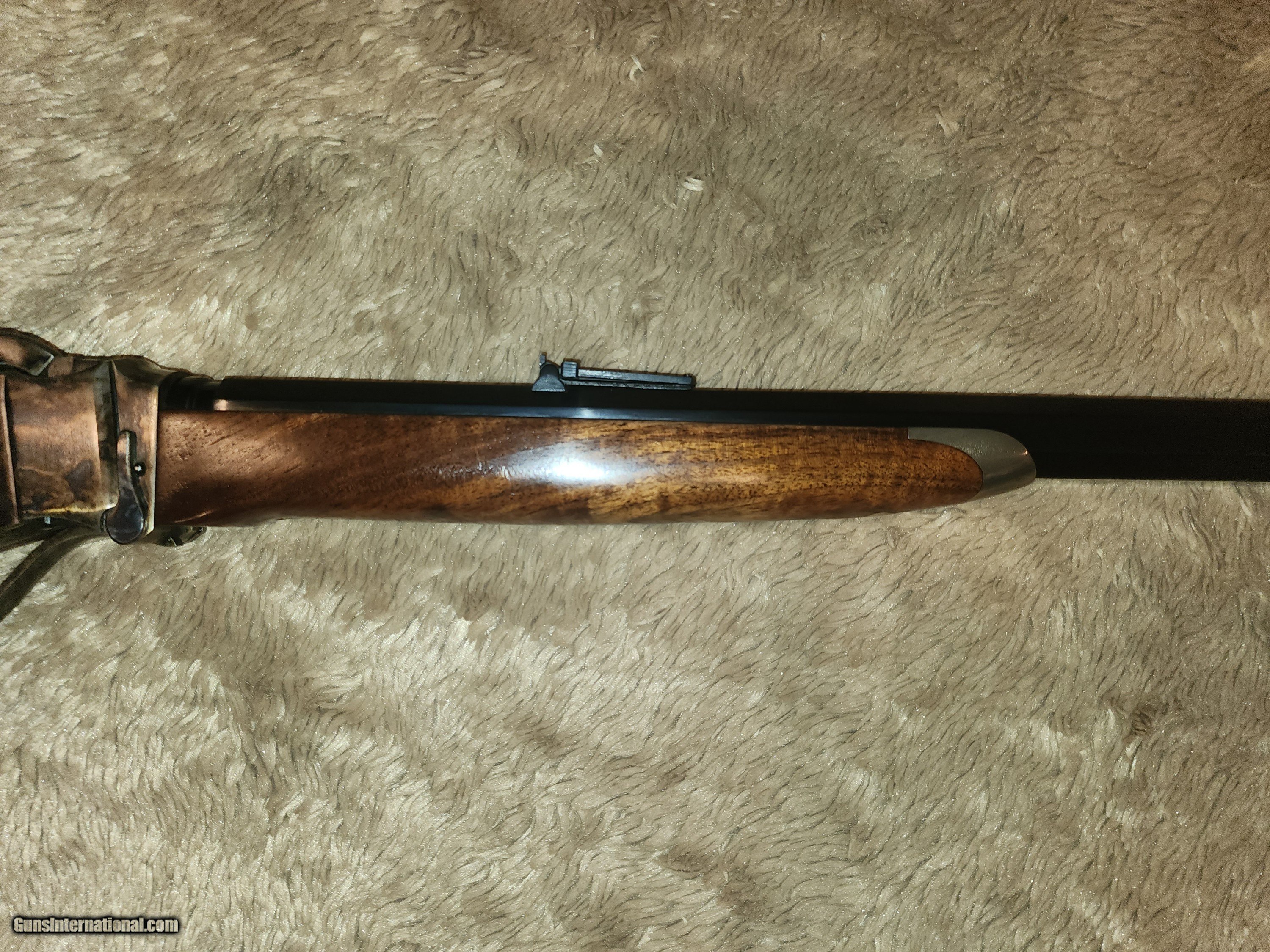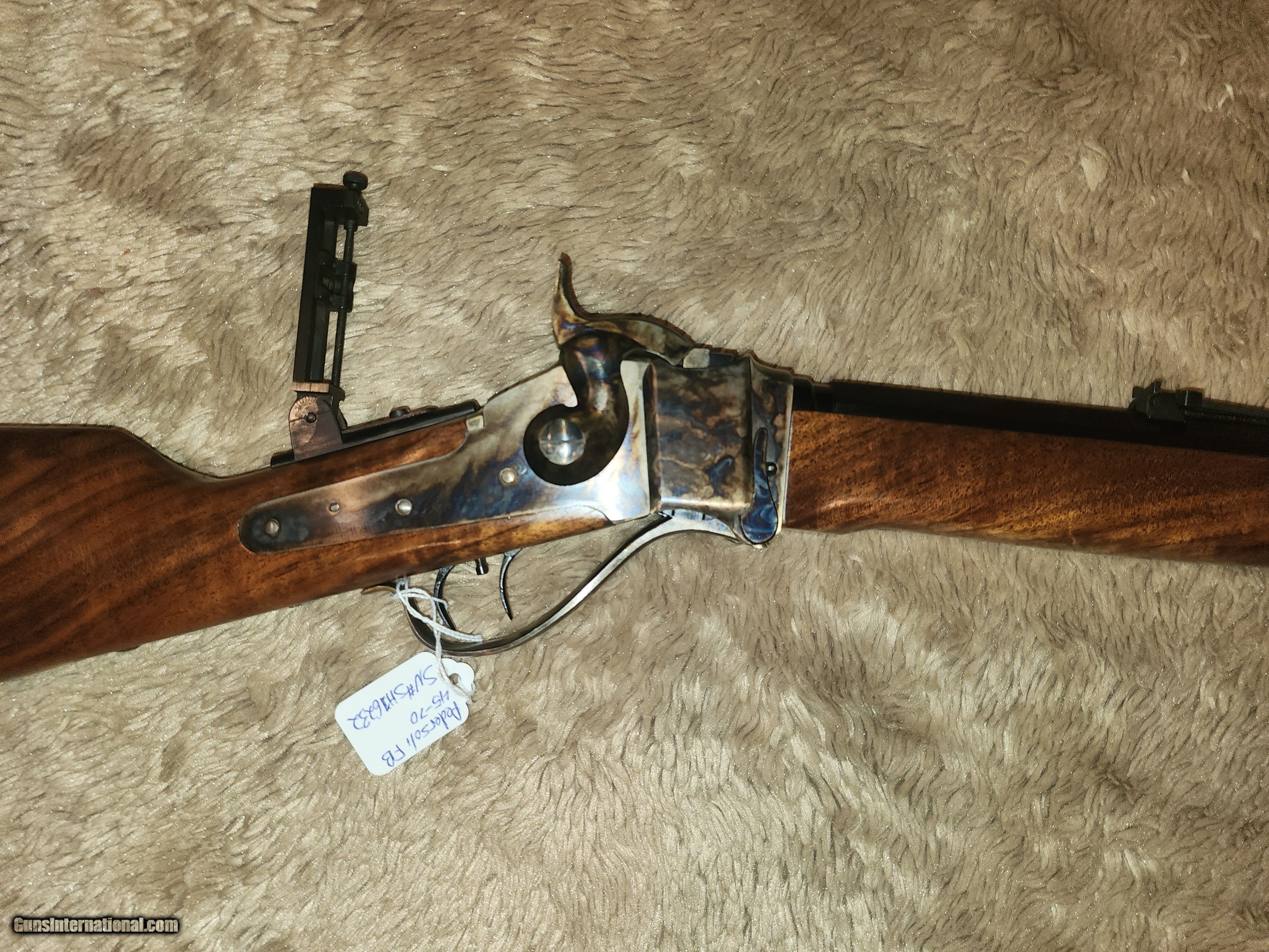 Description: Pedersoli Long Range Sharpes 45-70, 34 Inch Octagon Barrel, Vernier Sight. Never fired, beautiful Condition, a couple of light impression marks on wood. This gun is on consignment from an estate I have no other information. SOLD Rifle Caliber: .45-70 Government |