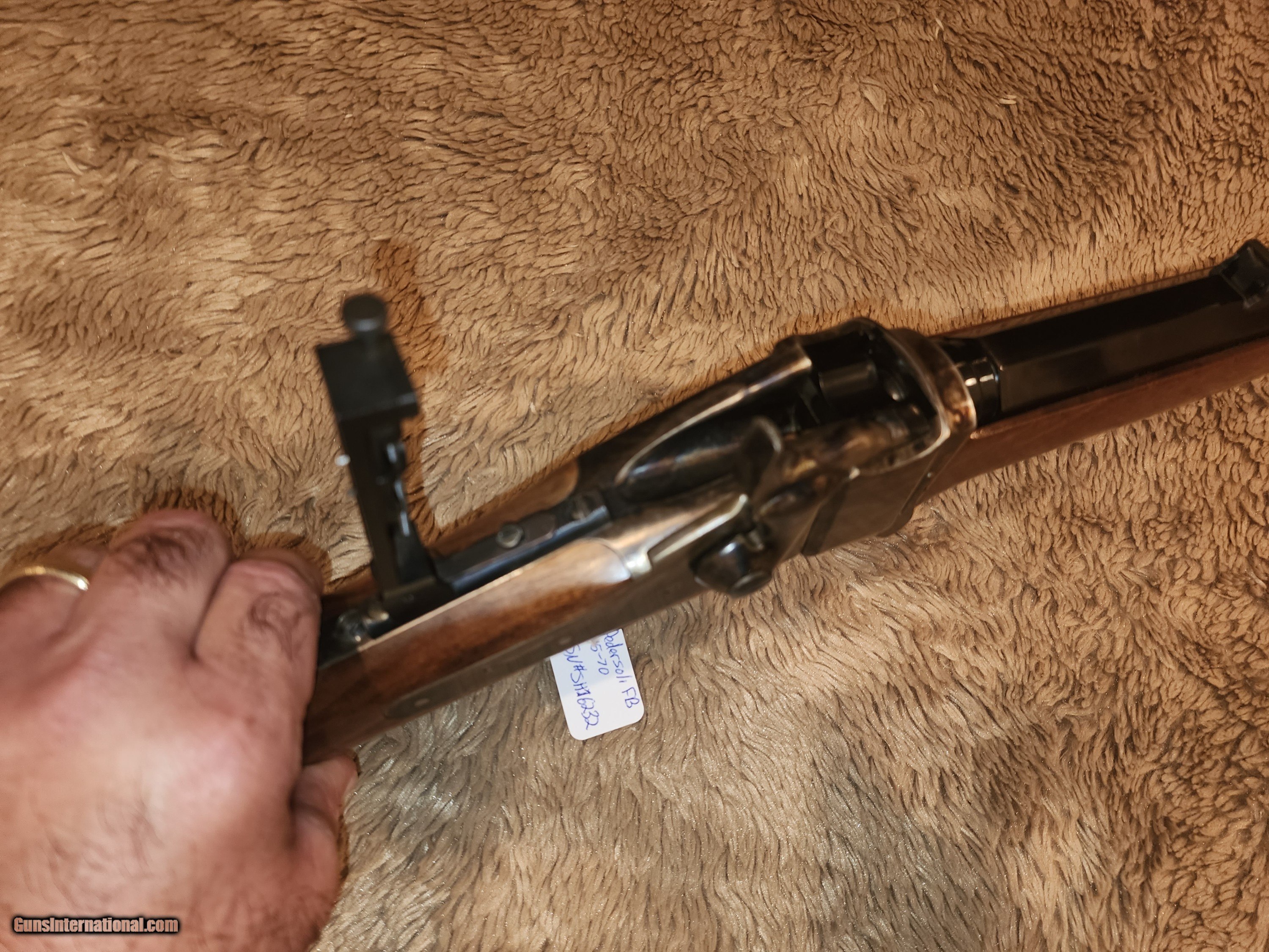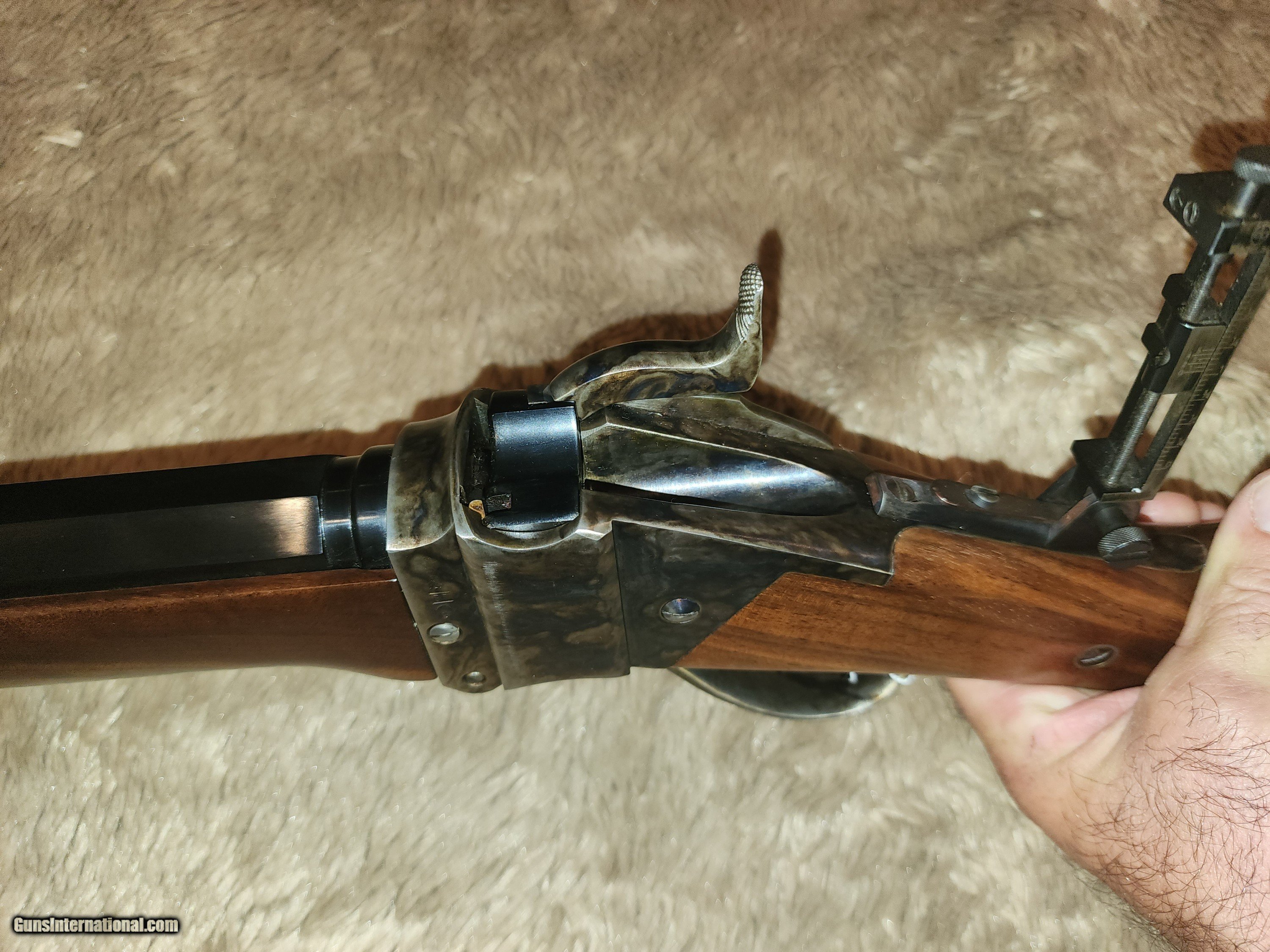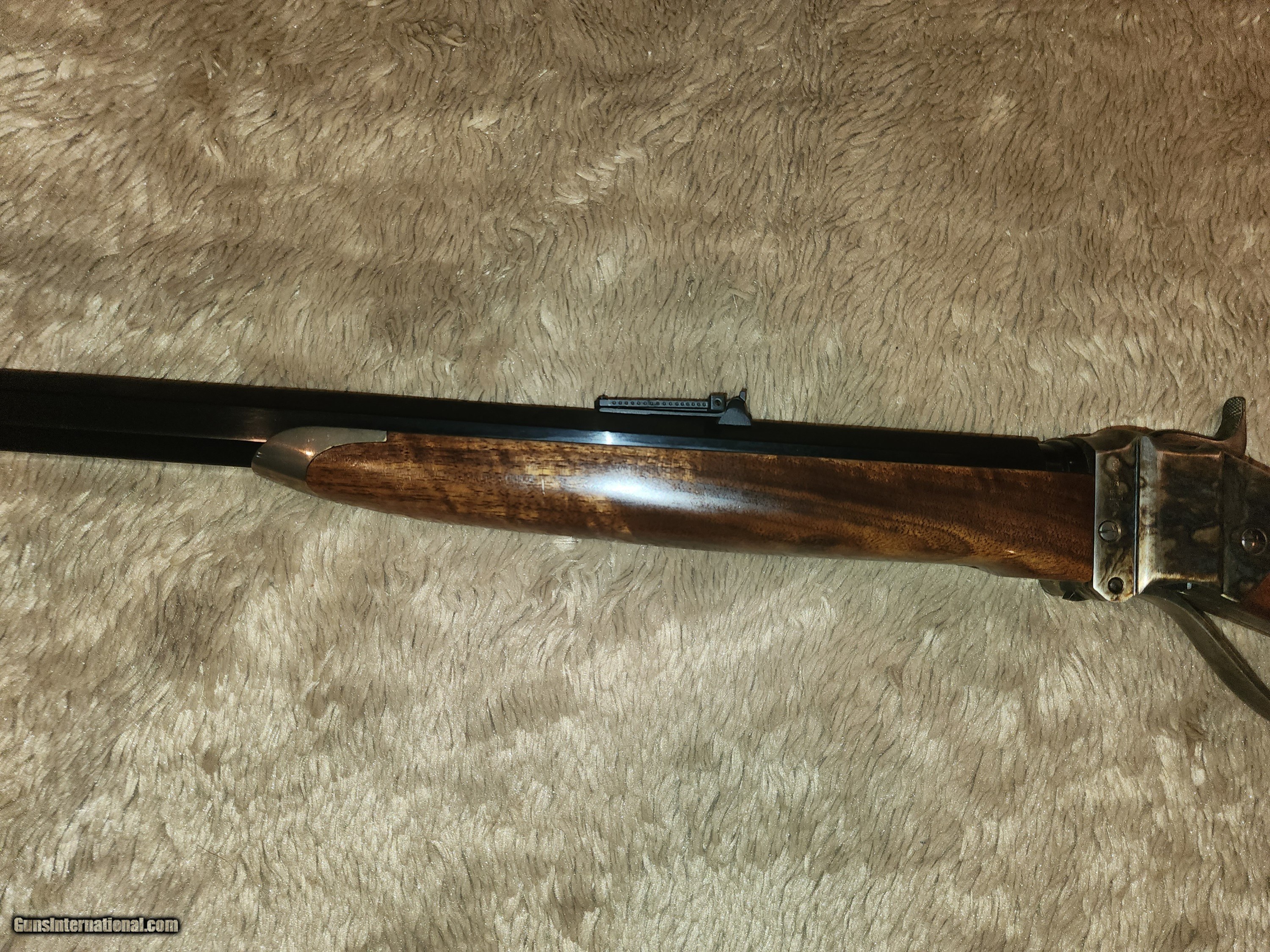 Description: Pedersoli Long Range Sharpes 45-70, 34 Inch Octagon Barrel, Vernier Sight. Never fired, beautiful Condition, a couple of light impression marks on wood. This gun is on consignment from an estate I have no other information. SOLD Rifle Caliber: .45-70 Government |