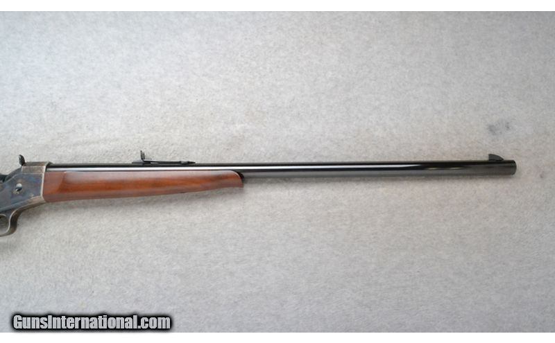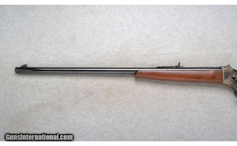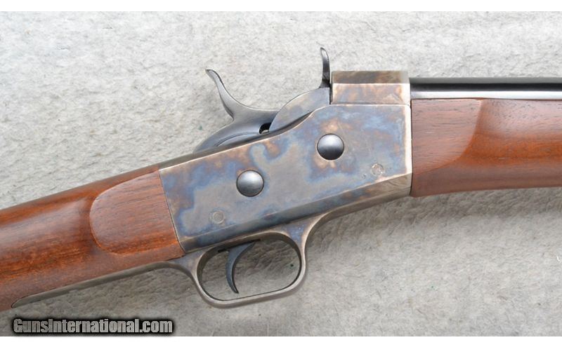 Description: This Pedersoli Rolling Block Model is a single shot rifle in .45-70 Gov't. Cal. It has a 28 inch barrel. A blade front sight and an adjustable notch middle sight. The receiver and butt plate are case colored. The butt stock is a smooth grip walnut straight grip. The forearm is a smooth grip walnut. .45-70 Government SOLD Chambers: Single Shot. Metal Condition: Excellent. Wood Condition: Excellent. Bore Condition: Excellent. Barrels: 38 inches. Stock Dimensions: LOP 14 1/4 inches. Fore End: Smooth grip walnut. Butt Pad: Case colored steel. Weight: 8 lb. 14 oz. Sights: Blade front. Adjustable notch middle. Item Location: Richfield, WI |
