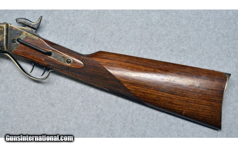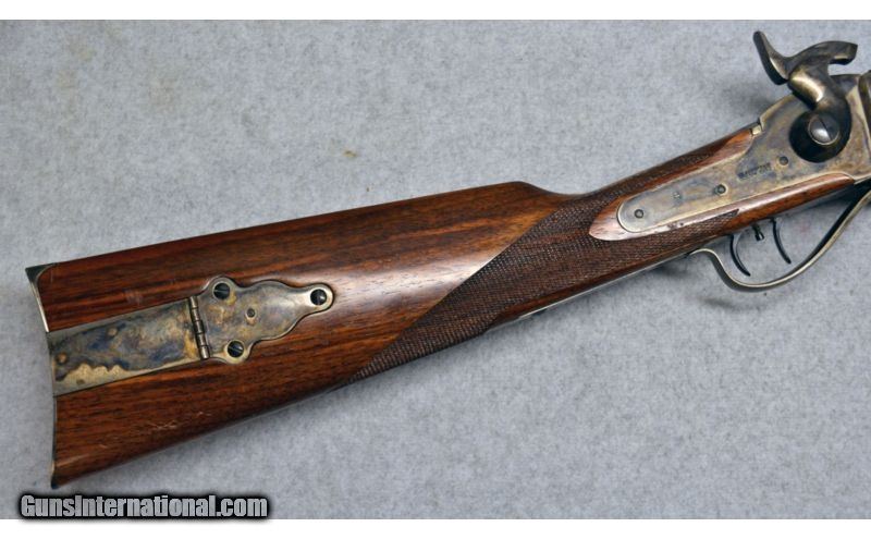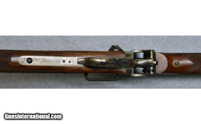 Description: SOLD Caliber Info: .45-120 Metal Condition: Very good Wood Condition: Good, some marks on butt stock Bore Condition: Fair Barrels: 34 Triggers: Double set trigger Stock: Wood, checkered Stock Dimensions: 14" LOP Fore End: Wood, checkered Butt Pad: Cresent case hardened metal plate Weight: 12.85 lbs Sights: Adjustable elevation rear sight, fixed front sight post Item Location: Grandville, MI |