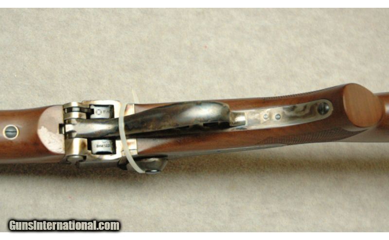 Description: SOLD Caliber Info: .45-70 Government. Chambers: Single shot falling block. Metal Condition: Excellent, appears as new. Wood Condition: Stock is excellent, appears as new. Bore Condition: Bright. Barrels: 30" Octagon heavy barrel. Triggers: Double set triggers. Stock: Natural finish. Stock Dimensions: 14" LOP. Fore End: Smooth. Butt Pad: Metal butt plate. Weight: 11 Lbs. Sights: Iron sights. Extras: With box. Item Location: La Vista, NE |