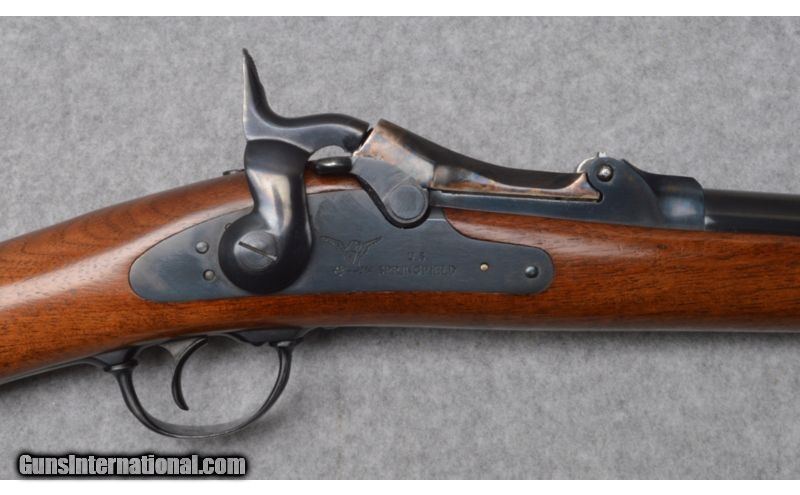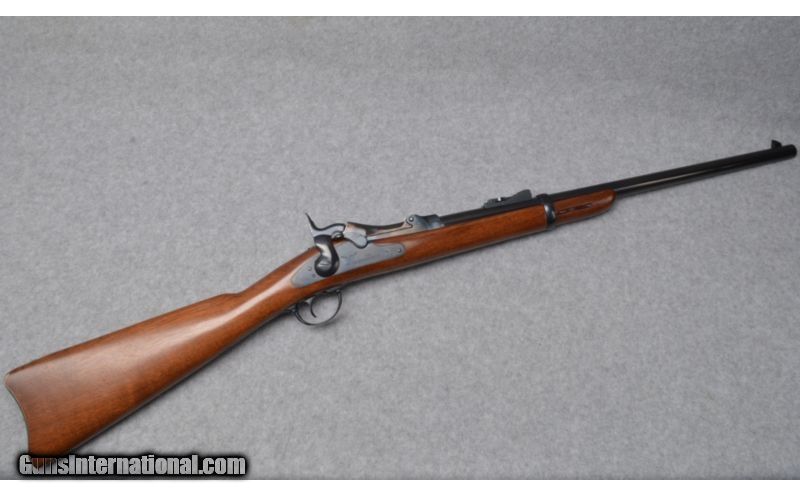 Description: This is a Pedersoli reproduction of a Springfield 1873 trapdoor rifle in .45-70 Govt. The rifle is in overall excellent condition. The barrel is polished blue and there is no visible blue loss. The wood is excellent with a few light handling marks. The bore is bright and shiny and rifling is crisp. SOLD Caliber Info: .45-70 Govt. Chambers: Single shot trapdoor rifle. Metal Condition: Excellent. Wood Condition: Excellent. Bore Condition: Bright with crisp rifling. Barrels: 22" blued with factory sights. Triggers: Smooth blue trigger. Stock: Smooth walnut, straight. Stock Dimensions: 13" length of pull. Fore End: Matching walnut fore end. Butt Pad: Steel crescent butt plate. Weight: 7 lb 9 oz. Sights: Blade front, adjustable rear. Item Location: West Chester, OH |