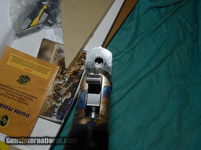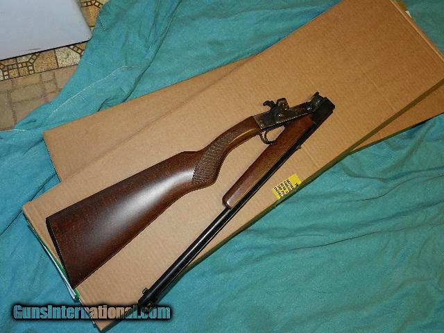 Description: A neat folding parlor rifle.A break open muzzleloading light weight handy rifle with modern technical features and ideal for indoor shooting. The 4.5mm caliber barrel folds down by pushing a lever in front of the triggerguard. Ramrod is stored on the upper part of the barrel. Buttstock with checkered grip and black plastic buttplate and forearm. Stock is hardwood with a satin finish. 2 1/2" drop with 14 1/2" trigger pull. Barrel is 4.5mm (.177) caliber, blued. 17 3/4" in length, round - .570 outside diameter, rifled with 10 lands and grooves. This is a 1 in 15" twist. Has front sight - blued steel blade style and rear sight - blued steel open style. Ignition is percussion - 209 primer only. Features color casehardened receiver blued steel furniture. Overall length is 34 5/8" and weighs 3 1/2 lbs. Accessories include a steel ramrod w/brass tip threaded 5/32" and a brass brush. Recommended load is .177 BB. Average muzzle velocity is 690 ft/sec.To buy a gun from me you must get a direct email for me, with details, and shipping cost. We don’t have asite .I prefer money orders or a check. Item ships when funds come in. If you can only pay with a card let me know. I’m sorry I don’t list my phone number, did that for 30 days, never again.. I can’t talk on the phone all day…who will ship the guns? I’m just one person, and it’s very busy here! I do a brisk volume! I hope you like my wide selection of unusual guns, knives and gun parts. Shipping price determined by zip code. I try to keep the prices affordable, which means I make less money than most dealers. You won’t get altitude sickness with my prices! I consistently have the best selection of older guns If you attempt to buy, you must still contact us for details, buying doesn't end the sale, it just sends an email telling us you want to buy this gun. A phone call won’t secure a sale! Not home many times, the first buyer by email buys the gun !Thissite does not close down a sale when you do a BUY! I can get six buys in an hour, first buyer to email gets the guns, others are in second place! Best to send another email . Sometimes not home to get calls. Some guns are required shipment to a gun dealer near you for a transfer to you when it arrives. With the widest selection of older guns at great prices, We don’t have a store, and sell on the internet only. SOLD |