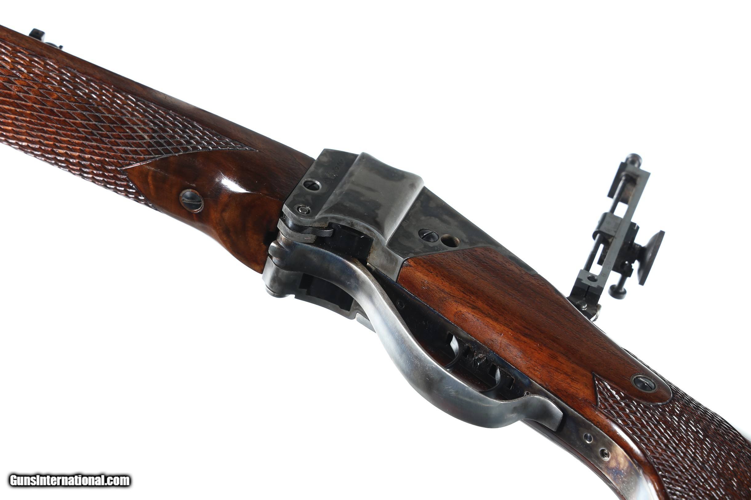 Description: Custom Sharps 1874 Long Range rifle by Pedersoli with octagon Bbl chambered for the powerful 45-120 cartridge. Long Range Pedersoli tang sight with globe front sight. Custom finished walnut stocks with pewter tip, Double set triggers, cheek rest and coin silver pistol grip cap with US, Federal Eagle motif. Condition, Fine as used with added finish to stocks, Bright bore and mechanically fine. • Free Shipping, No Credit Card Fees. • Lay-a-way available for this firearm. • 1/3 Down, a 1/3 in 30 Days 1/3 in 60 Days. SOLD Rifle Caliber: .45-120 Sharps Manufacturer: Pedersoli Model: Sharps 1874 Serial Number: SH17140 Barrel Length: 34 |