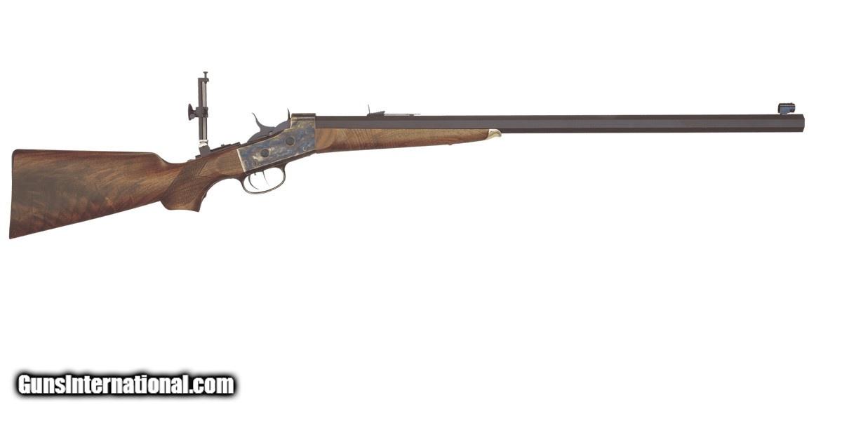 Description: Manufacturer: Taylor's & Company ( Davide Pedersoli ) Model: Rolling Block John Bodine Rifle SKU: 210165 Caliber: .45-90 Sharps Capacity: Single Shot Twist: 1:18" Barrel Length: 34" Octagonal, Matte Blued Steel Trigger: Double-Set Frame: Case Hardened Steel Overall Length: 50.88" Stock: Walnut Checkered Pistol Grip Forend: Inlet German Silver Cap Drilled & Tapped: On Upper Tang for Rear Sight Sights: Front - Dovetail Tunnel Sight, Rear - Dovetail Buckhorn Includes: Adjustable Universal Creedmore Tang Sight and Front Tunnel Sight Weight: 12.55 lbs All items are factory new in box unless otherwise stated. Based on the information available to us, the above specifications describe this item to the best of our knowledge. For further information, please contact or visit the manufacturer's . SOLD |
