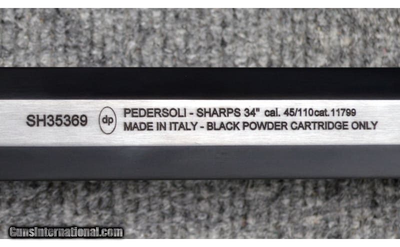 Description: For your consideration, a Taylors & Co. 1874 Sharps rifle chambered in .45-110 Sharps. The 34" heavy profile octagonal barrel features a 1:18" twist with 6-groove rifling. Sighting consists of a globe front sight and tang-mounted, Vernier-style peep. The double, set trigger is adjustable for pull weight. This was made for Taylors & Co. by Pedersoli. NOTE: barrel markings stipulate use of black powder cartridges only. .45-110 Sharps SOLD Metal Condition: Excellent Wood Condition: Excellent Bore Condition: Excellent Barrels: 34 Triggers: Double Stock Dimensions: 14.25" LOP Butt Pad: Steel Weight: 13.25 LBS Sights: Iron Sights Item Location: Hamburg, PA |