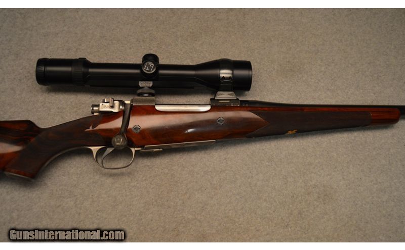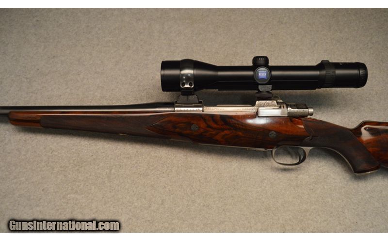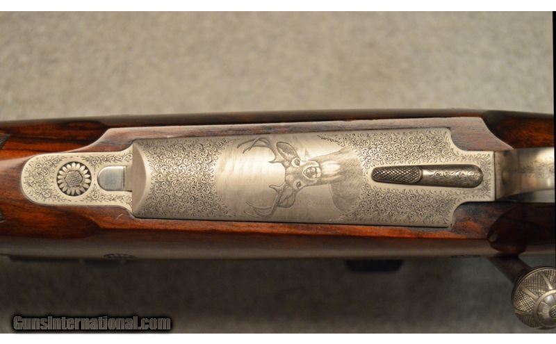 Description: Perugini VisiniProfessional Magazine Rifle chambered in .338 Winchester is in good condition with some signs of use oh the Stock, fore-end, and barrel. Elegantly engraved on the bolt and receiver and the bottom has similar engravings with a deer on the hinged floorplate with the engravers name. It also has a Zeiss Diavari VM 1,5-6X42 scope mounted on the rifle. .338 Winchester Magnum SOLD Item Location: Hazelwood, MO |