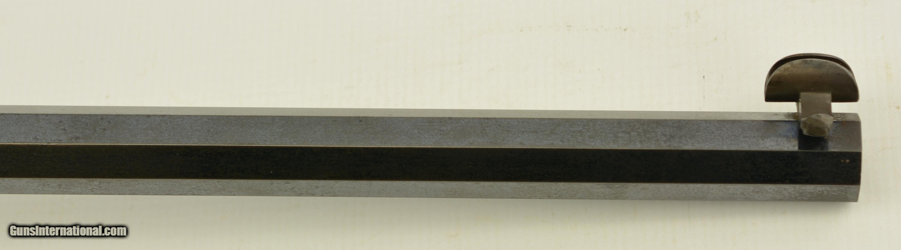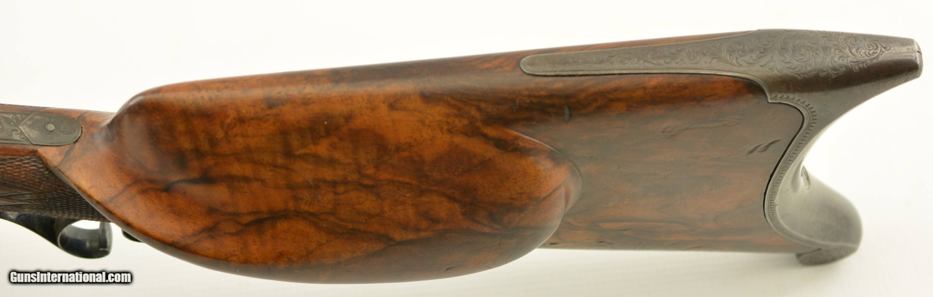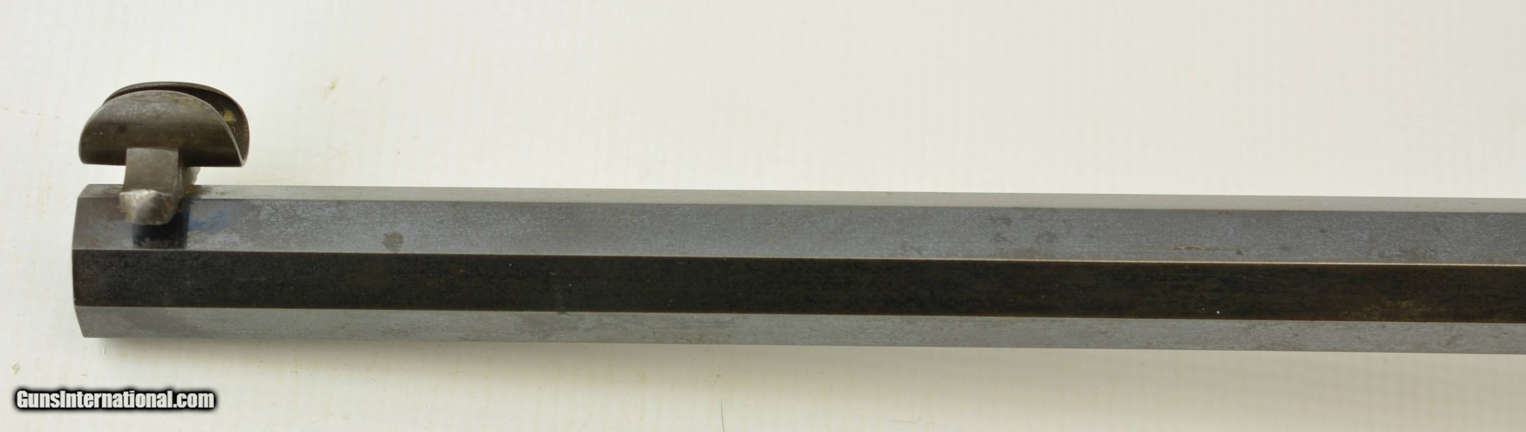 Description: NSN, 11mm Pinfire, 28 1/4" barrel with an excellent, bright bore. This is a beautifully crafted rifle that retains 85-90% of the original brilliant blue on the barrel that has developed some subtle, plum-brown freckling, heaviest at the muzzle, as well as some trace silvering along a few of the edges. The maker's name is inlaid in large Gothic letters along the top: “M. Forstner in Carlsruhe." The frame has a back-action lock with delicate floral scrollwork engraving, as well as the complete maker's name inlaid in gold around the base of the hammer: “FORSTNER-KLINGLER, CARLSRUHE" (a Carlsruhe maker and retailer in operation ca. 1865. The original front sight is still present, but the rear sight is not included. The short forend has a small, wedge-fastened piece of walnut, but is mostly taken up with the long opening lever. The buttstock has beautifully figured Circassian walnut with contoured cheek-piece, and robust metal buttplate with large engraved disk finial at at the toe. Skillfully repaired breaks are present at the wrist and the buttplate stands proud of the wood in spots. The barrel lock-up is solid, and the action functions flawlessly. There is an armorial bearing inlaid in gold on the top of the wrist that shows a canted shield emblazoned with a goose (or swan) rampant, tilting helm with short mantling, and a crest consisting of a dragon (or serpent head) emerging from a crown. The arms are themselves surmounted by a crown with seven pearl finials (often used to denote a Freiherr or Baron in some German traditions). We have not been able to definitively identify the arms, however they do bear a more than passing resemblance (especially the crest on the helm) to those belonging to the Göler von Ravensburg family. This is further supported by their ancestral seat being in Sulzfeld, a town close to Karlsruhe where the rifle was made, however there are other families that have bearings more closely matched to the design on the shield. In any event, this is a rifle of high quality, made for an important person, and remains in excellent overall condition. Antique SOLD Manufacturer: Forstner & Klingler Model: Schuetzen Caliber Info: 11mm Gauge Info: 11mm |