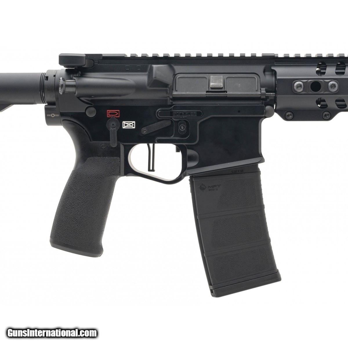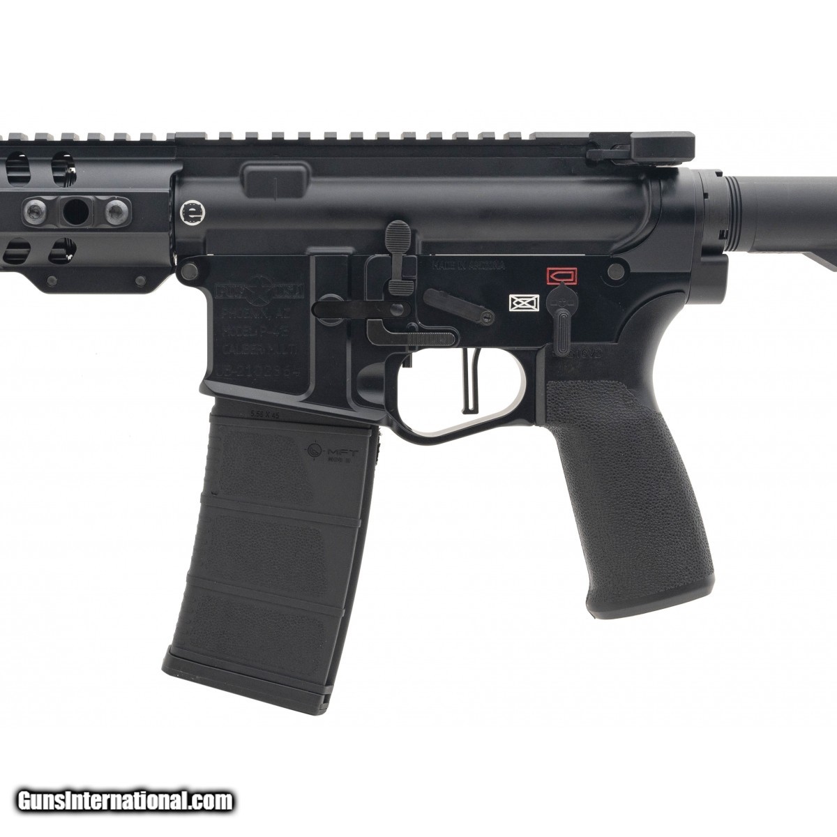 SN:UB-2102864. Semi auto 16" direct impingement ambidextrous AR-15 style rifle with MLOK rail, MFT tailhook stock, POF muzzle break & drop in trigger pack. In excellent condition. Comes in box.
