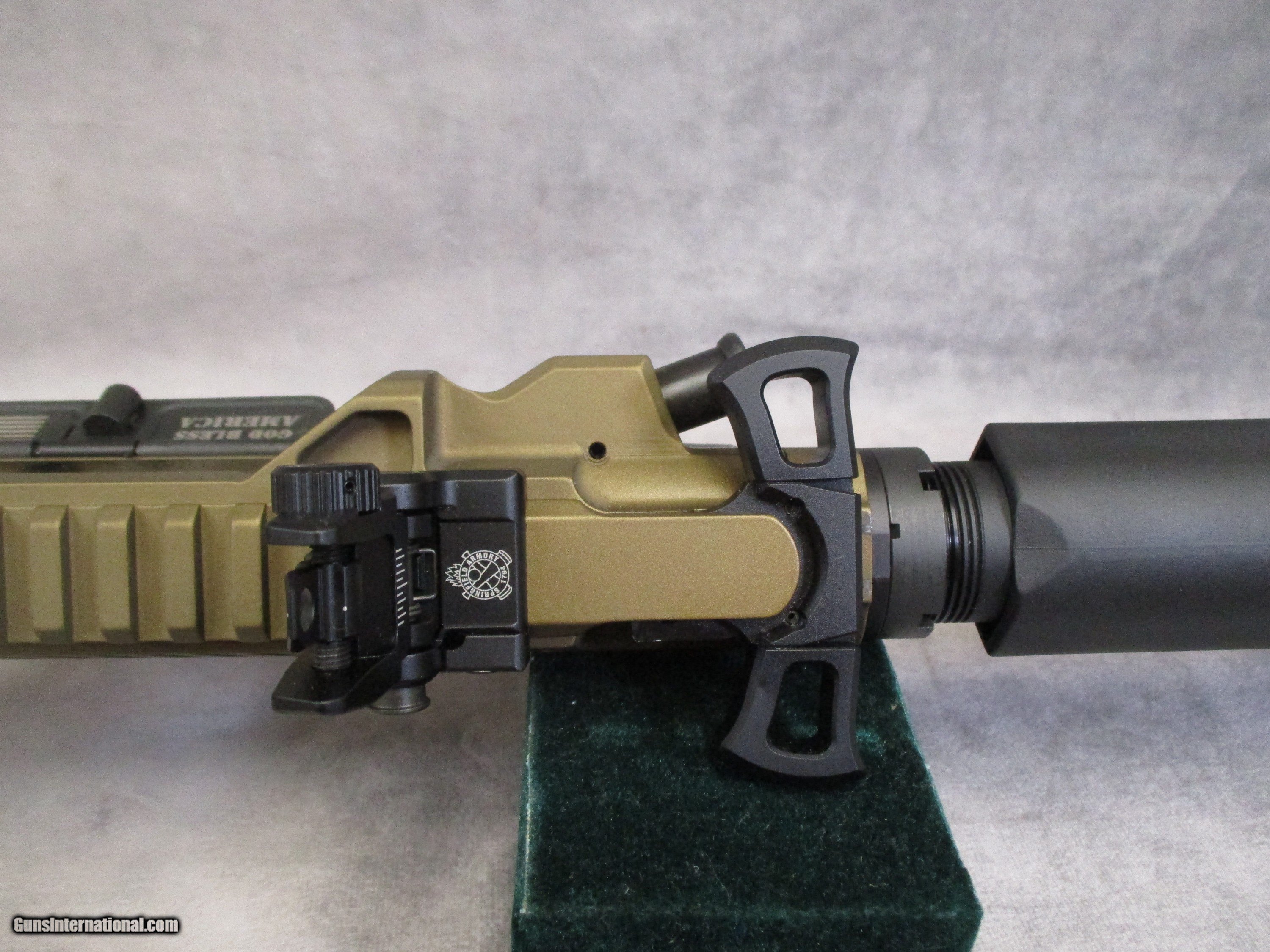 Description: The Patriot Ordnance Factory’s (POF) Revolution rifle was first of a new generation of AR10 rifles close to or identical in size to the traditional AR15. This permitted the user to carry a rifle chambered in the powerful .308 Winchester at a weight level associated with rifles chambered for the smaller 5.56 round. Every aspect of this rifle’s design is intended to promote longevity and reliability, as well as being user-friendly. The 4150 chrome-moly-vanadium steel barrel uses precise 5R rifling to ensure a high-level of accuracy with the .308, as well as the similar 7.62 NATO cartridge. The chamber features POF’s patented E^2 (E squared) dual extraction technology. This consists of four small channels cut into the chamber’s walls. It allows a small amount of gas pressure to push against the neck of the spent casing. This pressure assists in extraction by breaking the seal between the case and the chamber itself, as well as pushing fired casing to the rear as the extractor is pulling to the rear. This reduces the amount of work that would otherwise be performed entirely by the extractor. The gas system is rifle-length and utilizes the Dictator 9-position adjustable gas block for accommodating the full gamut of .308 ammunition available on the market today. The 14.5-inch-long Renegade rail system is M-Lok compatible and has slots in the 3 o’clock, 6 o’clock, and 9 o’clock positions. The top features a full-length picatinny rail. There are 4 QD attachment points. Both the upper and lower are made of billet machined 7075-T6 aluminum. The Gen 4 lower is fully ambidextrous and features an integral oversized trigger guard for gloved hands in wintertime. The Renegade DI is equipped with an excellent single-stage drop-in trigger with a smooth 4.5 lb. pull, crisp brake, and a very short reset. Charging the bolt is performed via the ambidextrous Tomahawk charging handle. The pistol grip and adjustable stock are MFT’s Engage V2 grip and Minimalist stock respectively. The Revolution DI comes with one 20-round Magpul PMAG magazine and is compatible with AR10/SR25-pattern metal magazines as well. To top it off, the barrel is fitted with a triple-port muzzle brake. The muzzle uses the standard 5/8”-24 thread twist found on 30-caliber barrels. Iron sights are Springfield Armory flip-up sights found on the Springfield Saint series of rifles. They are made from aircraft-grade aluminum and are very durable. Sight radius is an excellent 19 inches. This rifle is lightly used and is in great shape. This version has the 18.5-inch barrel which POF apparently no longer offers, the 16.5” and 20” versions being the only two visible on their site. The rifle comes with its original box. SOLD Rifle Caliber: .308 Winchester, 7.62x51mm NATO Manufacturer: Patriot Ordnance Factory (POF) Model: CMR Revolution DI Serial Number: PH-2200470 Bore: 5R rifling, 5 grooves, 1:10 inches (1 in 254 mm) RH twist. Ejectors: Auto-ejection Condition: Used - Excellent Barrels: 4150 chrome-moly-vanadium steel, black nitride heat-treated, E2 chamber Barrel Type: Threaded Action: Semi-auto, direct impingement Triggers: Match Grade drop-in trigger, single-stage, curved, 4.5 lbs. pull weight, short reset Stock: MFT Minimalist 6-position adjustable Fore End: 14.5-inch (368 mm) aluminum Renegade Rail System with M-LOK slots, 4 QD points Butt Pad: Rubber LOP: 10.625 – 14.0 inches (269.875 – 356 mm) Finish: H-148 Burnt Bronze Cerakote Weight: 7 lbs. 11.5 oz. empty Sights: Springfield Armory aluminum flip-up front & rear sights, sight radius 19.0 inches (482.6 mm) Case: POF Box |