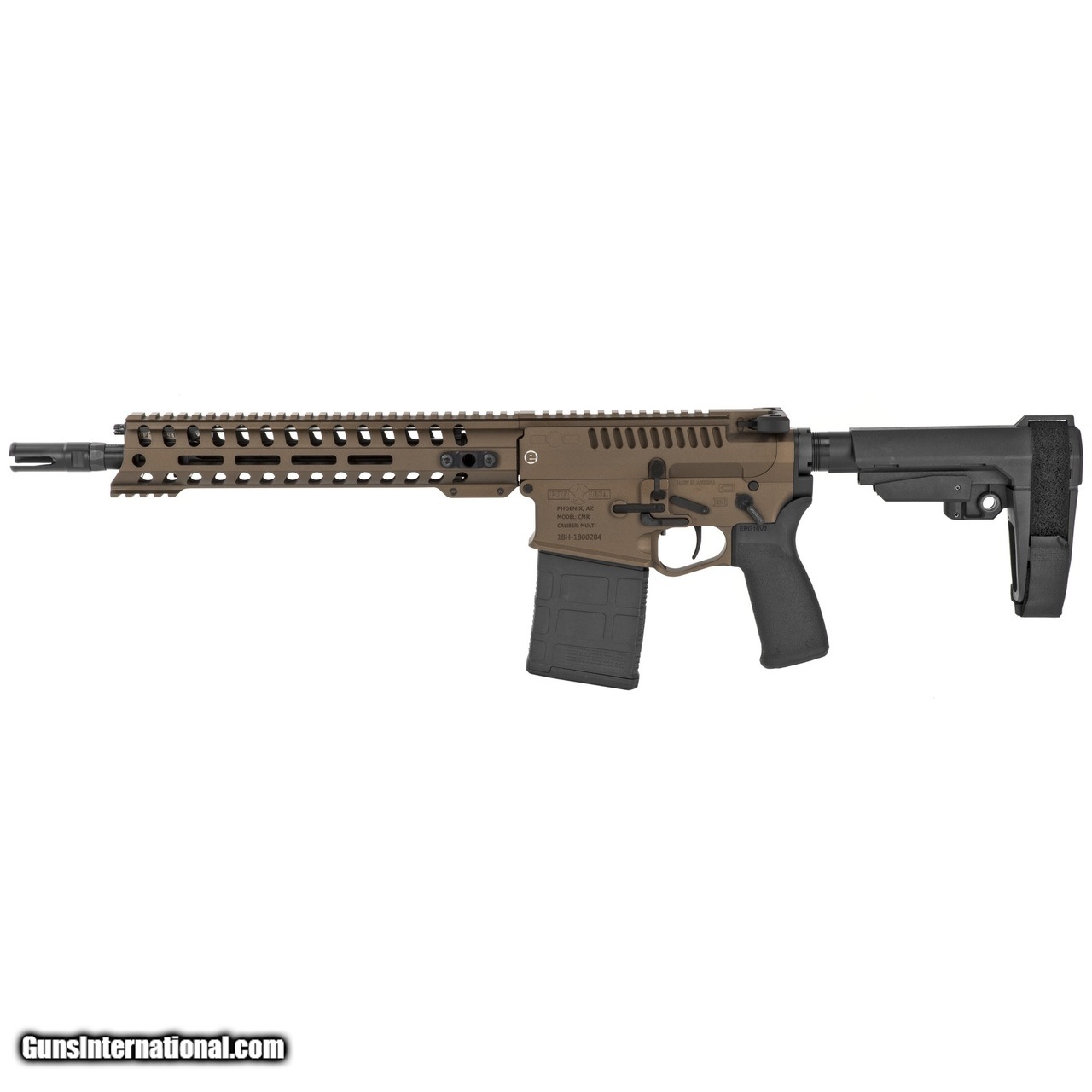 Description: Manufacturer: POF USA - Patriot Ordnance Factory Model: Revolution DI SKU: POF01600 Caliber: 7.62x51mm NATO / .308 Win Action: Semi-Auto, Direct Impingement Capacity: 20 Rounds Barrel Length: 12.5" Match Grade, Nitride Heat Treated Fluted Barrel Threaded 5/8x24 Triple Port Muzzle Brake Gas Block: 9-Position Adjustable Dictator Handguard: 11.5" M-Lok Renegade Free-Floating Rail Six-Position Anti-Tilt Buffer Tube Furniture: Mission First Tactical Grip and SBA3 Tactical Arm Brace Renegade Forend Tomahawk Ambidextrous Charging Handle Finish: Burnt Bronze Overall Length: 29.5" Collapsed Weight: 6.3 lbs All items are factory new in box unless otherwise stated. Based on the information available to us, the above specifications describe this item to the best of our knowledge. For further information, please contact or visit the manufacturer's . SOLD |