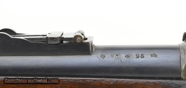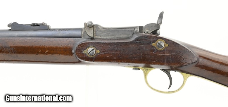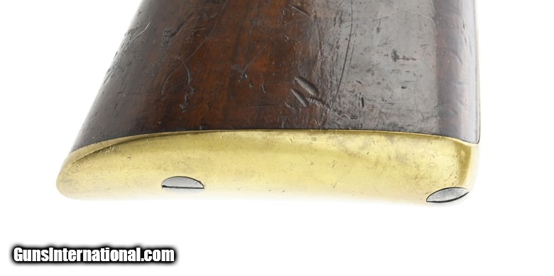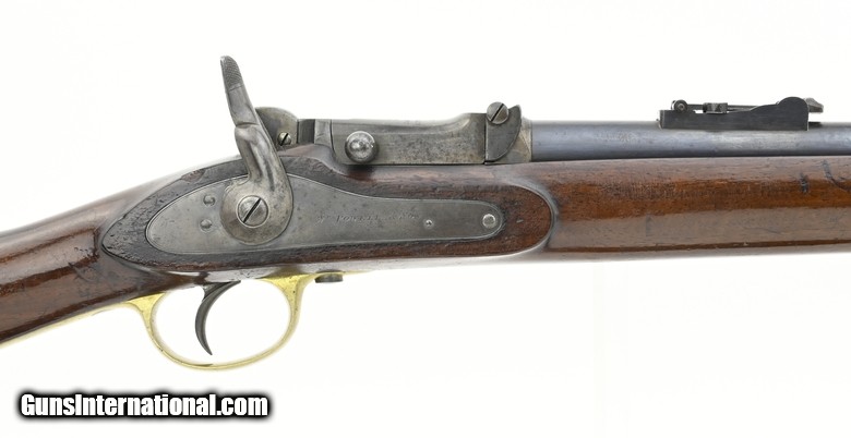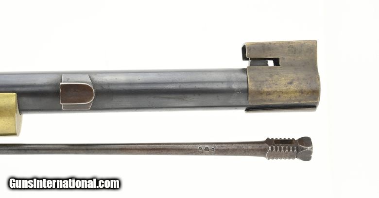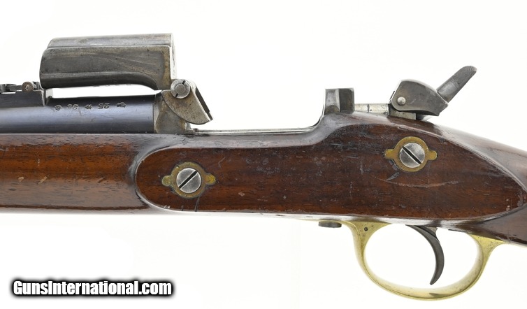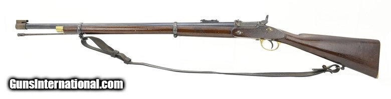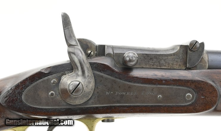 Description: "Albini-Braendlin British trials rifle by William Powell & Son. Overall length is approximately 48½". The 30½" round .577 centerfire caliber barrel has an excellent bore. Barrel has approximately 95% original blue. The bands have approximately 25% blue with the remainder a brown patina. The lock and receiver have some original case colors visible. The brass nose cap, trigger guard, and butt plate are fine. The stock is fine with sharp edges and no chips or cracks. There are a handful of handling dents with most on the right butt stock. The barrel has the unusual Birmingham proofs and caliber (25) marks. Lock is marked “Wm. Powll & Son". The breechblock front has a crown with “A&B" inside. On the top it is marked “Albini/ &/ Braendlin’s/ Patent/ No. 52". William Powell and Son have been in business since 1847 in Birmingham. Action functions correctly, and an original sling is present. This rifle, as indicated by the No. 52 on the breechblock, is undoubtedly one of the many British Trials rifles of the early cartridge era. It also comes with the original front sight cover. Don’t confuse this with the common Belgian Albini-Braendlin! If you’re into British Trials rifles or early cartridge centerfire rifles, this one is for you! This is the only one we have ever seen. SOLD |