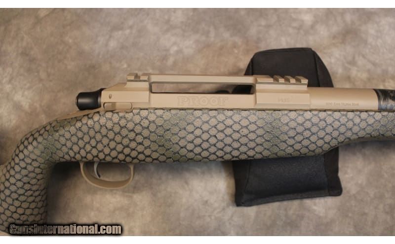 Description: This Proof Research TAC II is in excellent condition. It was produced circa 2016. It has a left-handed action. It bears a 1 in 9.4 twist carbon fiber barrel that has a muzzle break. It has an adjustable Jewell trigger. The stock is carbon fiber built in house at Proof Research. It is finished in TFDE Proof Research Camo Cerakote. This rifle is engineered for the utmost in accuracy. .300 Remington Ultra Magnum SOLD Chambers: .300 Remington Ultra Magnum Metal Condition: Excellent Wood Condition: Stock is made of carbon fiber Bore Condition: Excellent Barrels: 24 Triggers: Jewel Butt Pad: Black rubber Weight: 8.5 lbs Sights: Scope mount rail Item Location: Columbia, MO |