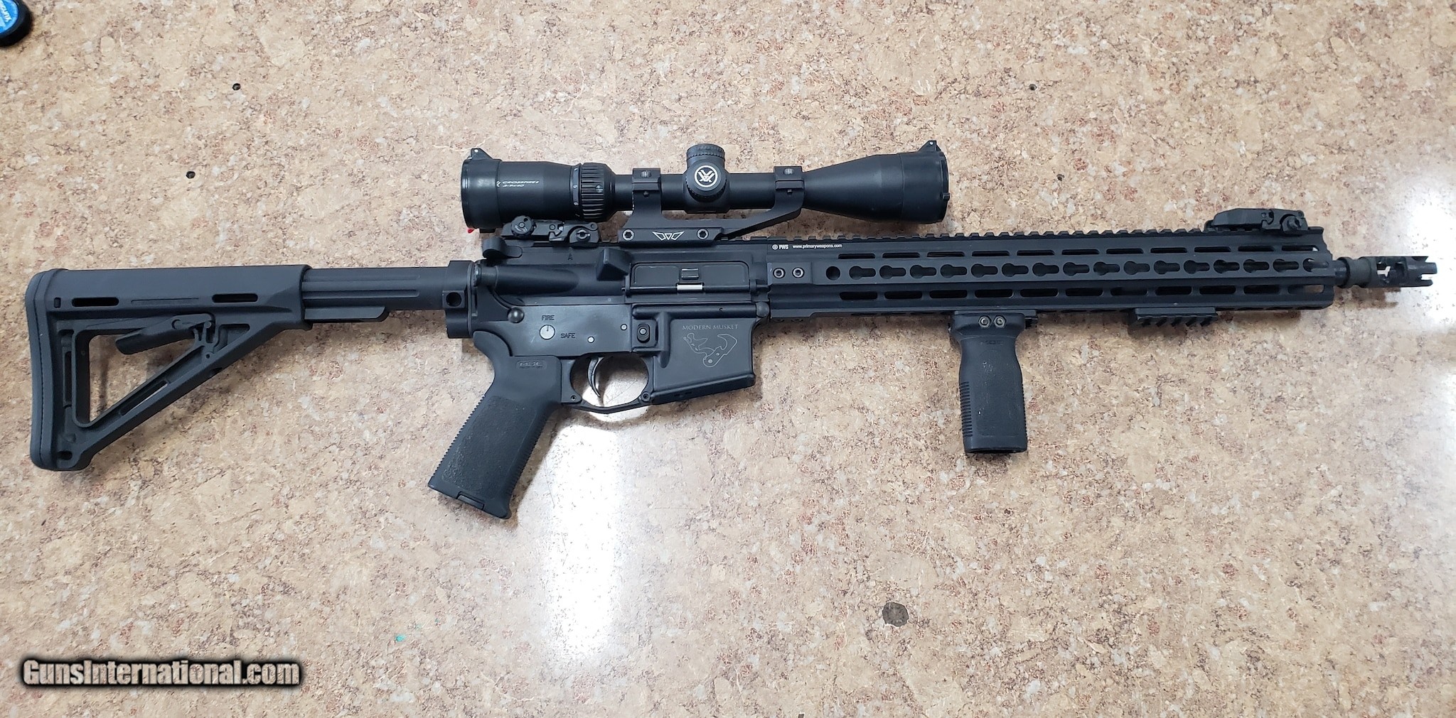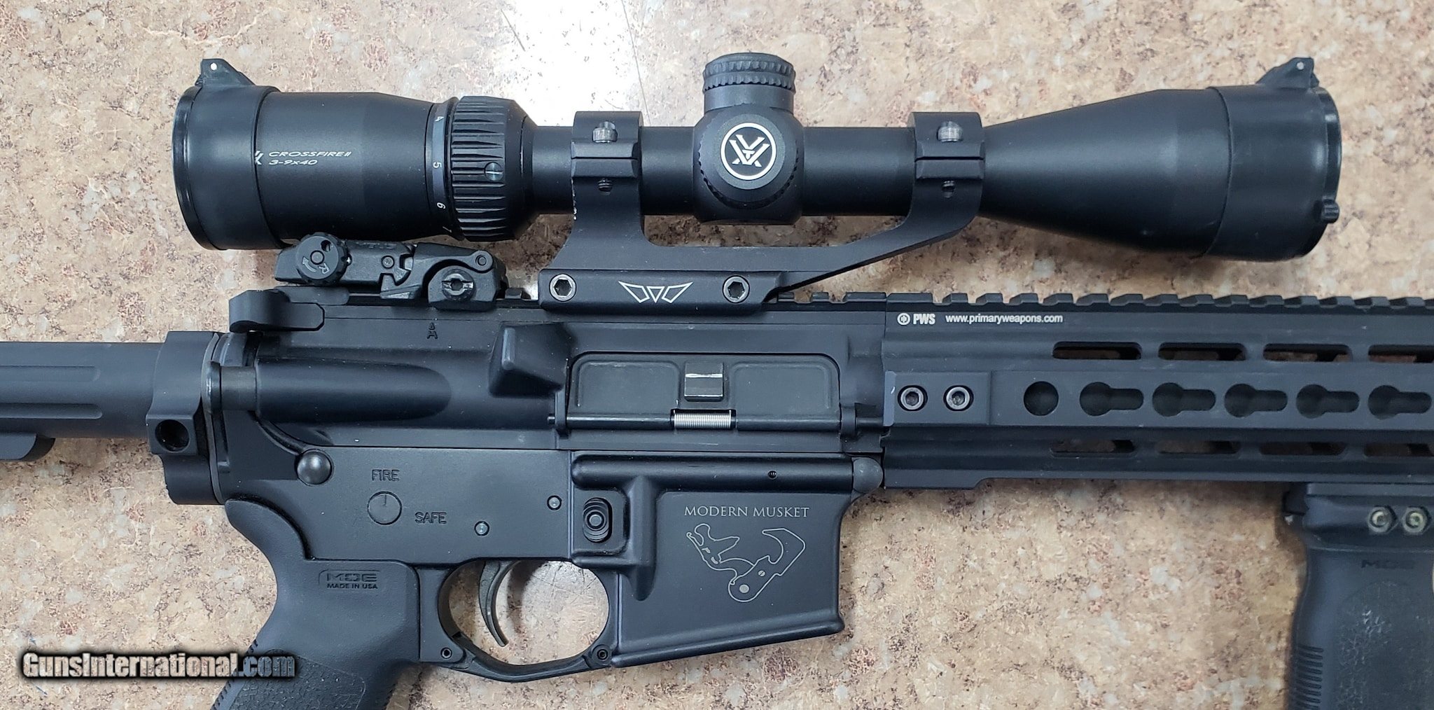 Description: Guns Listing ID: 401834 NRA Modern Gun Condition Standards: EXCELLENT: New condition, used but little, no noticeable marring of wood or metal, bluing perfect, (except at muzzle or sharp edges). This model of the PWS MK1 Modern Musket has a 16" in barrel length, a collapsible stock and a fore-grip. It also comes with a Vortex Crossfire II 3-9x40 scope. (BJB) SOLD Manufacturer: PRIMARY WEAPONS SYSTEMS (PWS) Model: MK1 Caliber Info: .223 / 5.56 NATO Condition: Used - Non-Certified Barrels: 16 BARREL Finish: BLUE AND BLACK |