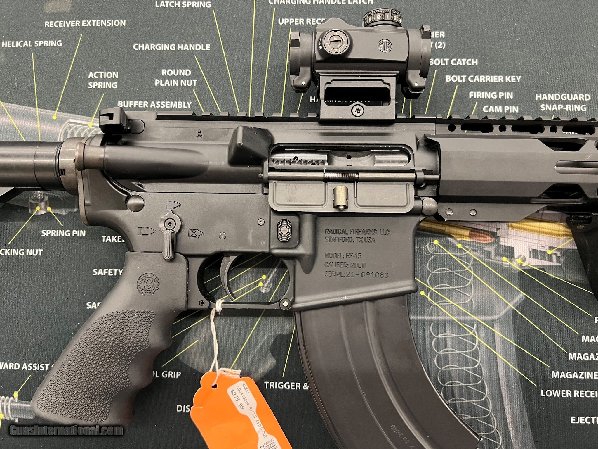 Description: Guns Listing ID: 720934 Gun is in great condition. Comes with gun, 1 short and 1 long magazine, sig sauer red dot with box, the box for the angled fore grip, a hogue monogrip still in box, the old stock and the box to the magpul stock on the rifle, the old charging handle and packaging for the new one. Comes as pictured. INV# ASXXX 216206 SOLD Manufacturer: RADICAL FIREARMS Model: MODEL RF-15 Caliber Info: 7.62X39 Condition: Used - Non-Certified Barrels: 16 BARREL Finish: BLK |