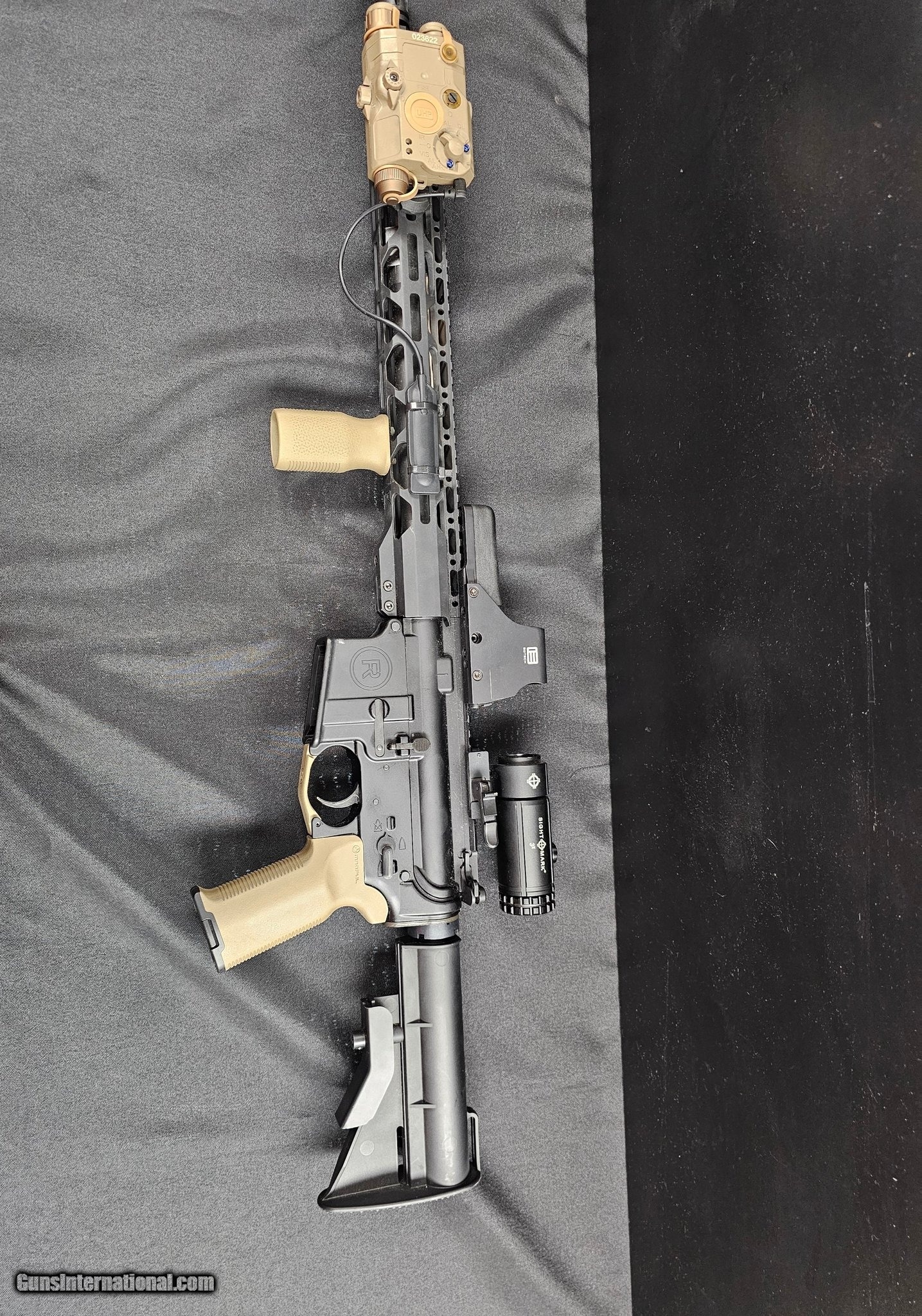 Description: Guns Listing ID: 1426656 Very good condition. Comes with 4 magazines, Eotech red dot, Sight Mark 3x magnifier and a flashlight with blue laser and IR. Has slight rust mark on extractor. SOLD Manufacturer: RADICAL FIREARMS Model: RF-15 Rifle Caliber Info: 5.56X45MM NATO Condition: Used - Non-Certified Barrels: 18 BARREL Finish: BLUED |