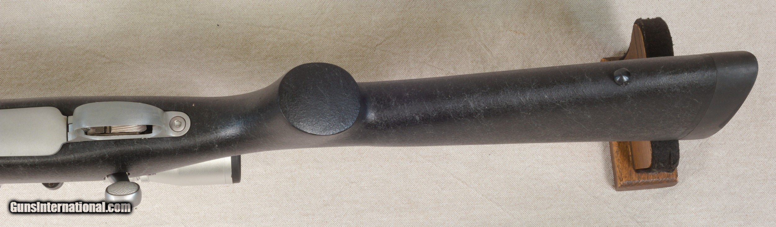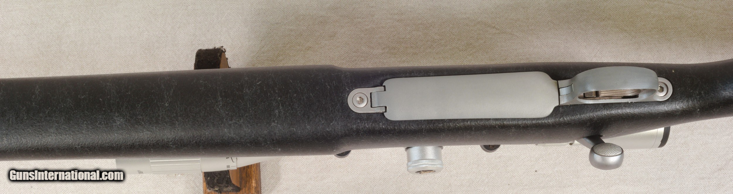 Description: Here we have a Remington 700 Sendero chambered in 7mm Remington Ultra Magnum caliber. The Remington Model 700 is a series of bolt-action centerfire rifles manufactured by Remington Arms since 1962. It is a development of the Remington 721 and 722 series of rifles, which were introduced in 1948. The M24 and M40 military sniper rifles, used by the US Army and Marine Corps, respectively, are both based on the Model 700 design. The 7mm RUM was created using the .404 Jeffery case which was also used to develop the .375 RUM .300 RUM, and .338 RUM. By necking down the .300 RUM to suit the .284 or 7mm projectile, Remington produced a non-belted case with a head diameter that is somewhat larger than belt diameter of original belted numbers. The resulting case has significantly more capacity than any conventional belted magnum. Compared to the 7mm Remington Magnum, top 7mm RUM loads deliver 25% more energy at 300 yards. This particular example appears to have been fired very little and is in very good condition. The rifle has very little metal wear or marks with the muzzle exhibiting light wear. The stock has a little wear on either side ot the front sling stud (Photo 14) where it looks like a bipod was attached for a period of time. The 26 inch fluted and free floated barrel has a very good bore with strong rifling. Included with the rifle is a Nikon Buckmasters 4.5-14 scope with paralax adjustment at the front of the lens and all mounting hardware. The rifle has a hinged floorplate. PRICE: $1295.00 We are Antique & Modern Firearms in Lexington, KY, a dealer of fine firearms since 1974. To inquire please call 859-276-1419 We Buy, Sell, and Trade Firearms & Knives. Have an Individual Firearm, Firearms Collection, or Firearms Estate to sell, let us know, and we can buy or consignment sell it for you. NOTE: No additional fee for a Credit Card payment SOLD Rifle Caliber: 7mm Remington Ultra Magnum Manufacturer: Remington Model: 700 Serial Number: S6407608 Barrel Length: 26 inch free floated stainless (matte) Fluted barrel Condition: Very Good Metal Condition: Very Good Bore Condition: Very Good strong rifling Weight: 9 lbs 14 oz |