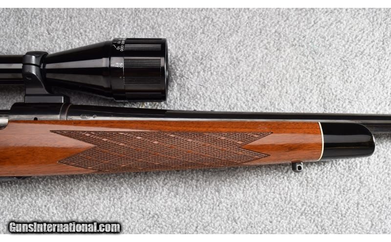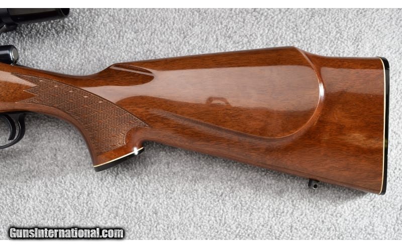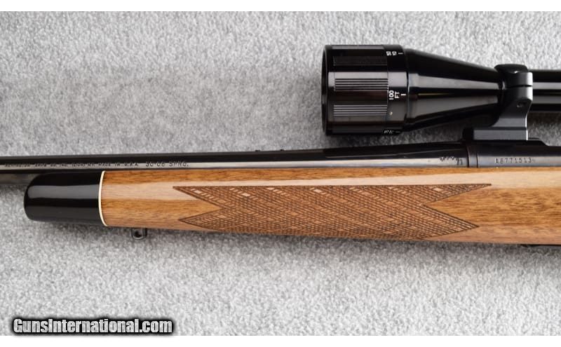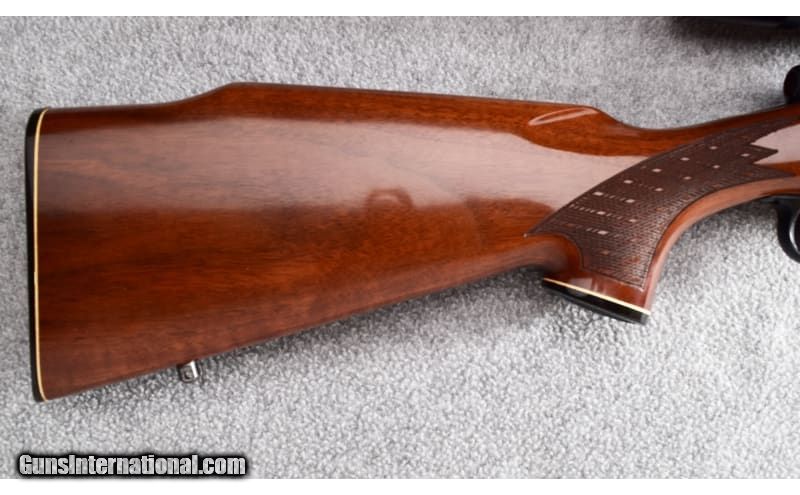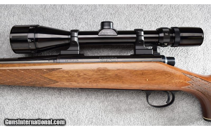 Description: This Remington Model 700 was manufactured in June 1979 and remains in excellent overall condition. Wood is solid and shows only a few light use marks on left receiver. Wood has also lightened on left side past wrist as if exposed to sun. Blue and bore are excellent. Barrel is factory drilled and tapped. No box. This is a Push Feed action gun complete with period Bushnell Banner 4x-12x scope. Very clean little gem! .30-06 Springfield SOLD Metal Condition: Excellent Wood Condition: Excellent Bore Condition: Excellent Barrels: 22 Triggers: Factory Stock Dimensions: 13 3/8" LOP Fore End: Double Skip Line Checkered Walnut with Checkered Plastic Pistol Grip Cap & Monte Carlo Cheek Piece - Double Skip Line Checkered Walnut with Ebony Forend Cap Butt Pad: Checkered Black Plastic Butt Plate Weight: 8 3/4 lbs Sights: Bushnell Banner 4x-12x Scope with Duplex Reticle Item Location: Wheeling |