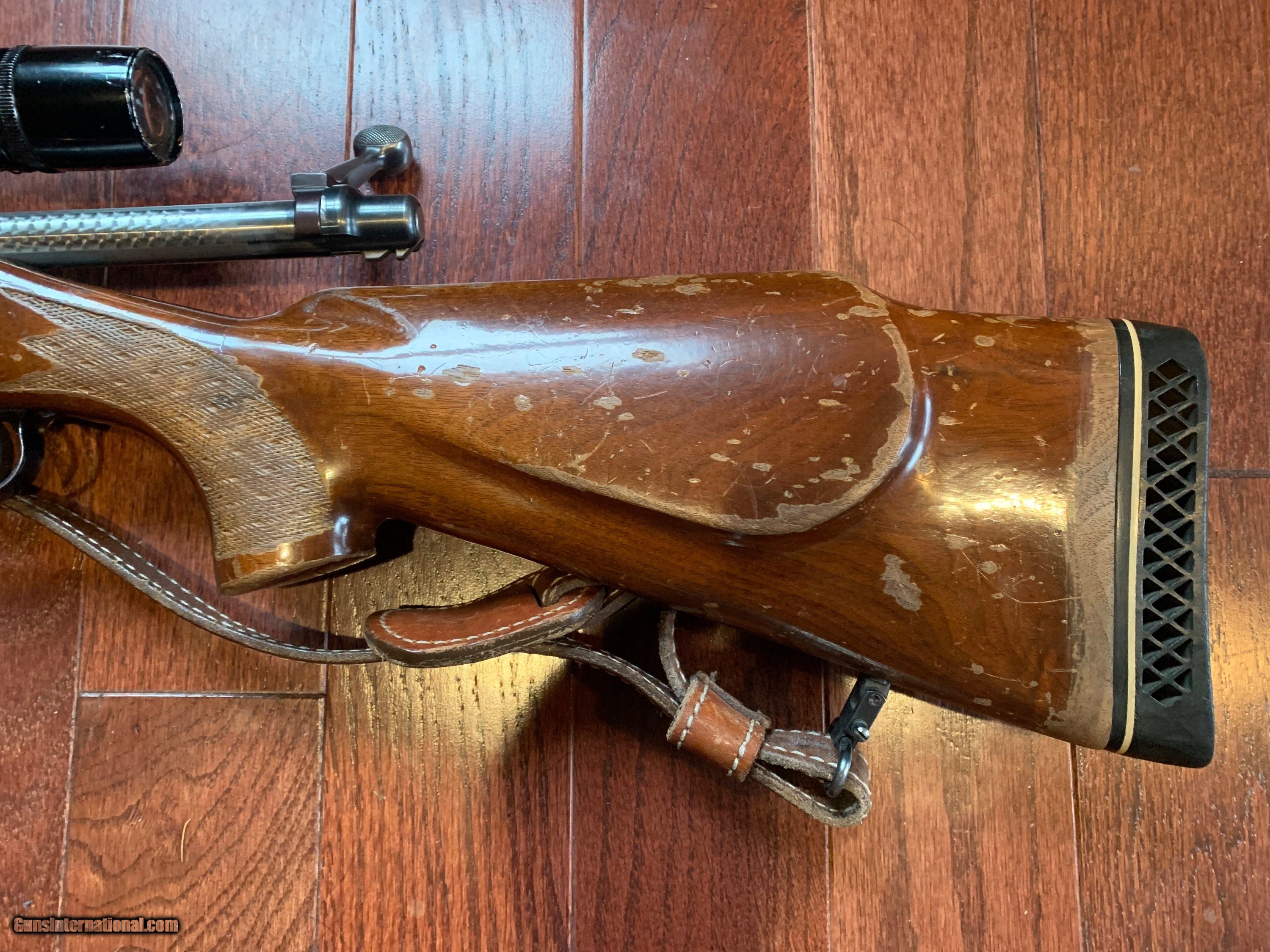 Description: SOLD:Well used and priced to sell Remington Model 700 30-06 bolt rifle with Bushnell Chief IV 3-9 scope. Wood stock is scratched, chipped and substantially marred. See photos. Metal including action, barrel and jeweled bolt are in very good condition and excellent operating condition. PRICED TO SELL. This would be a good starting hunting rifle and with a stock refinish would be a typically fine Remington 700 hunting rifle. SOLD Rifle Caliber: .30-06 Springfield Manufacturer: Remington Model: 700 Serial Number: 628xxx6 Barrel Length: 22” Bore: Rifled Condition: 50% Metal Condition: 80% Wood Condition: 40% Bore Condition: Very good Action: Bolt Stock: Very abused/used Finish: Metal black Sights: Scope Extras: Leather sling in good condition Item Location: Oregon |