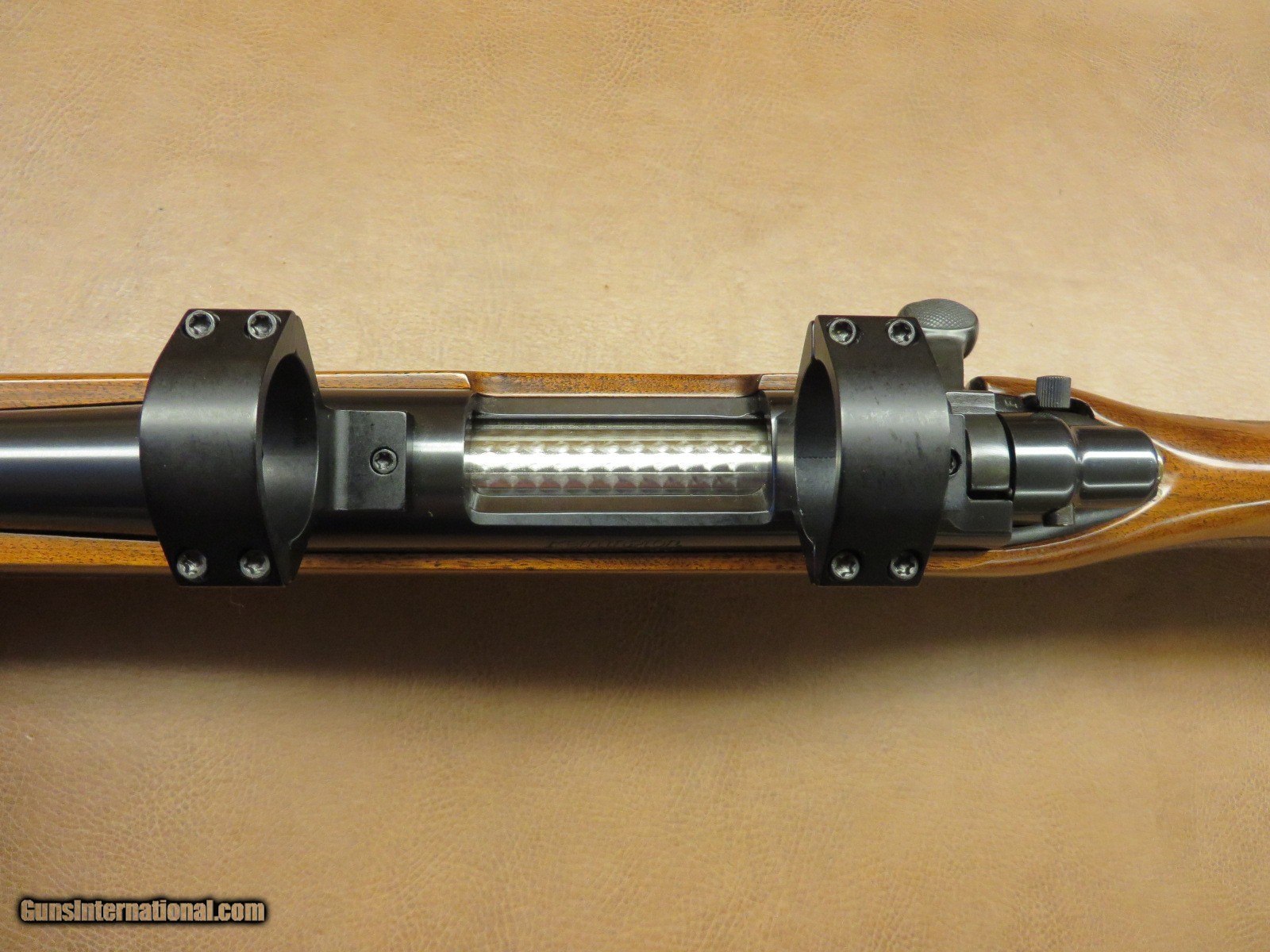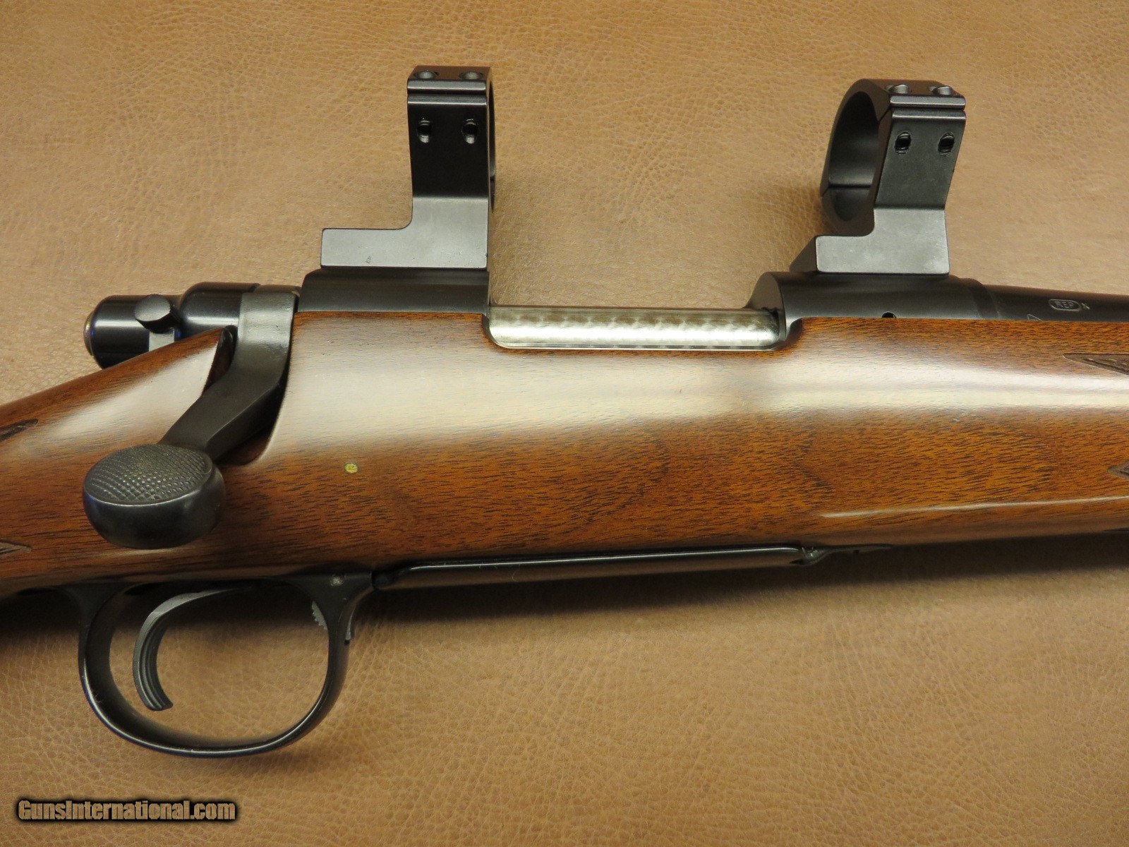 Description: .221 Remington Fireball has 24 inch barrel and Talley 30MM scope mounts. Satin finish checkered walnut stock has sling swivel studs and original rubber butt pad. Blue is 99% and the wood is 95%+. Comes in box but the last 2 digits of the serial number don't match the gun. SOLD |