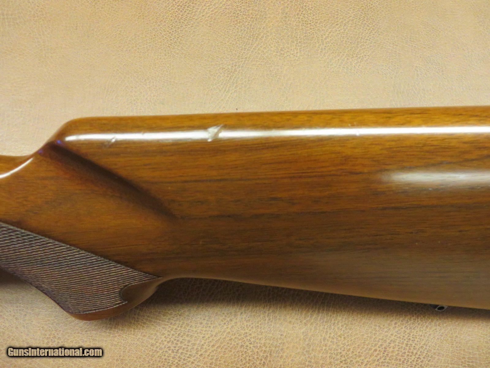 Description: .280 Remington has 22 inch barrel and Talley bases for scope mounting. Serial number E6410xxx. Checkered walnut stock with sling swivel studs and original rubber butt pad. Blue is 99% and the wood is 98%. SOLD |