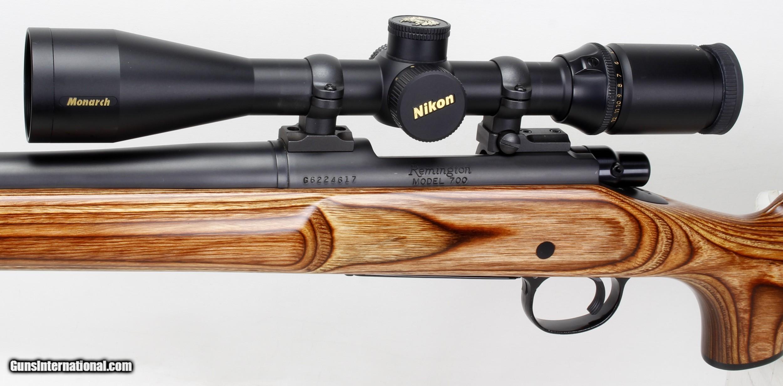 Description: Remington Model 700 Varmint Rifle in .22-250 caliber. SN #G6224617. Mfg. 1998-2001. LOP 13 1/2". 26" Heavy Barrel with a "Like New" bore. The Laminated Stock is in like New condition as is the black matte finish on the metal. Includes a mounted Nikon Monarch 3-12x42 Scope with fine Duplex Reticle,($450.00 to $490.00 value). Adjustable trigger set at 2 lbs, no travel. Comes with original box with Owner's Manual. A True Super Accurate Tack Driver. More pictures available upon request. Ships Lower 48 W/ Insurance $45.00. SOLD Manufacturer: Remington Model: 700 VL-S Serial Number: G6224617 Barrel Length: 26" Heavy Caliber Info: .22-250 Condition: Like New Metal Condition: Like New Wood Condition: Like New Bore Condition: Like New Action: Bolt LOP: 13 1/2 Finish: Black Matte |