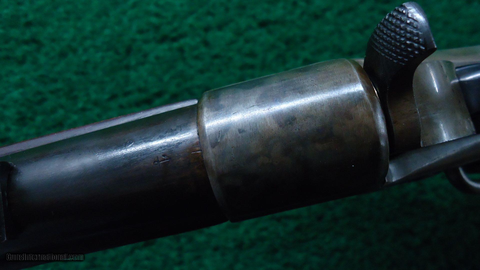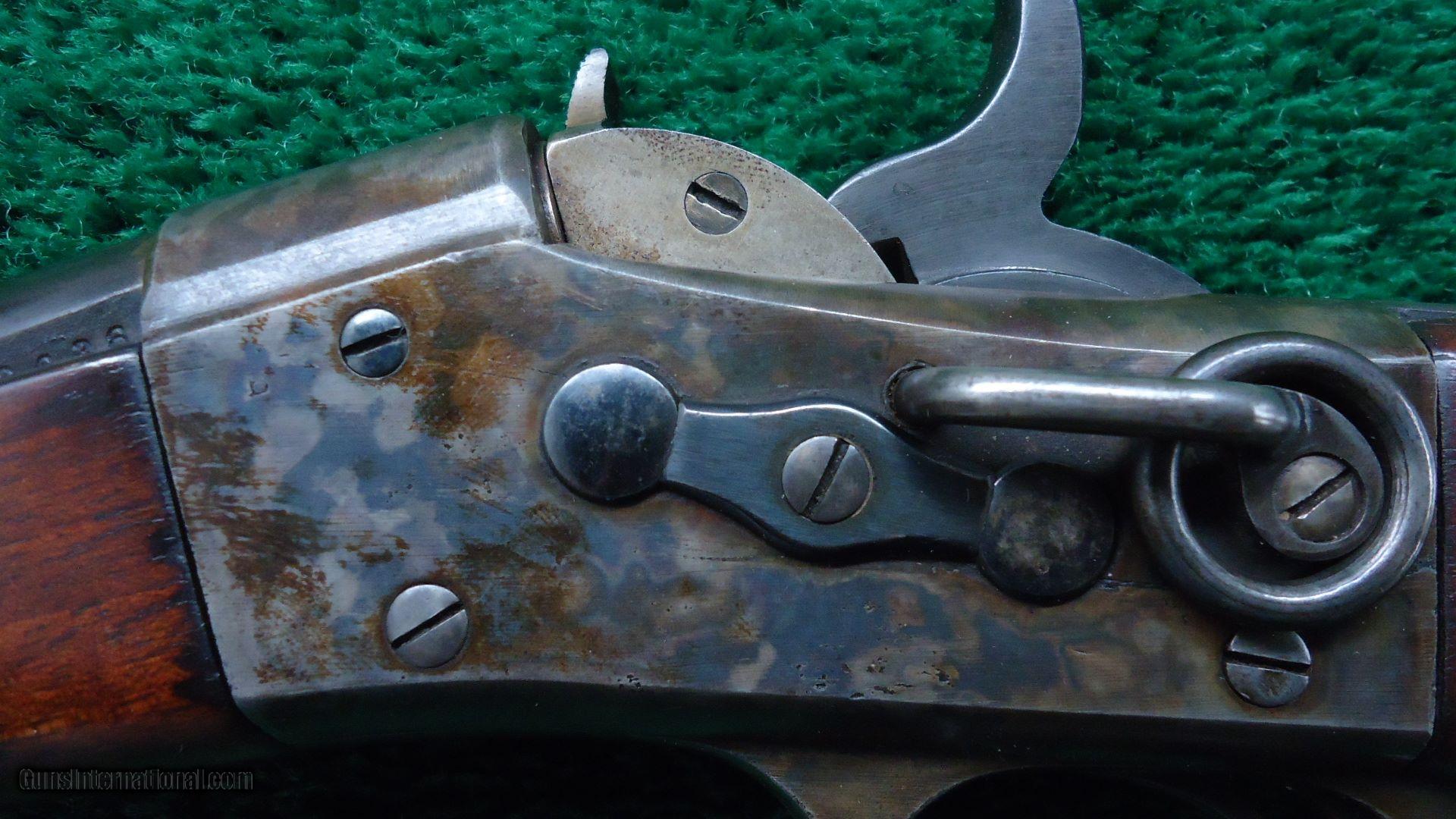 Description: Cal 50-70. 23" barrel with a blue/brown color. Good bore with strong rifling. Action retains a good amount of case colors. Wood is good with some oil added. This is quite an unusual specimen that may be a factory experimental gun put together from leftover Navy Rolling Block parts. Included is a sheet of paper discussing this possibility. Would be a cool addition to any Remington collection. Leroy Merz Antique Firearms specializes in antique and vintage Winchesters and other fine American firearms. Since 1965 Mr. Merz has taken part in the world of firearms and has been a contributor to many well known reference books. Just recently we mailed the 128th edition of our privately-published catalog. We have hundreds of additional guns in every price range at our home online. Search for Merz Antiques in google. SOLD Antique: Yes  |