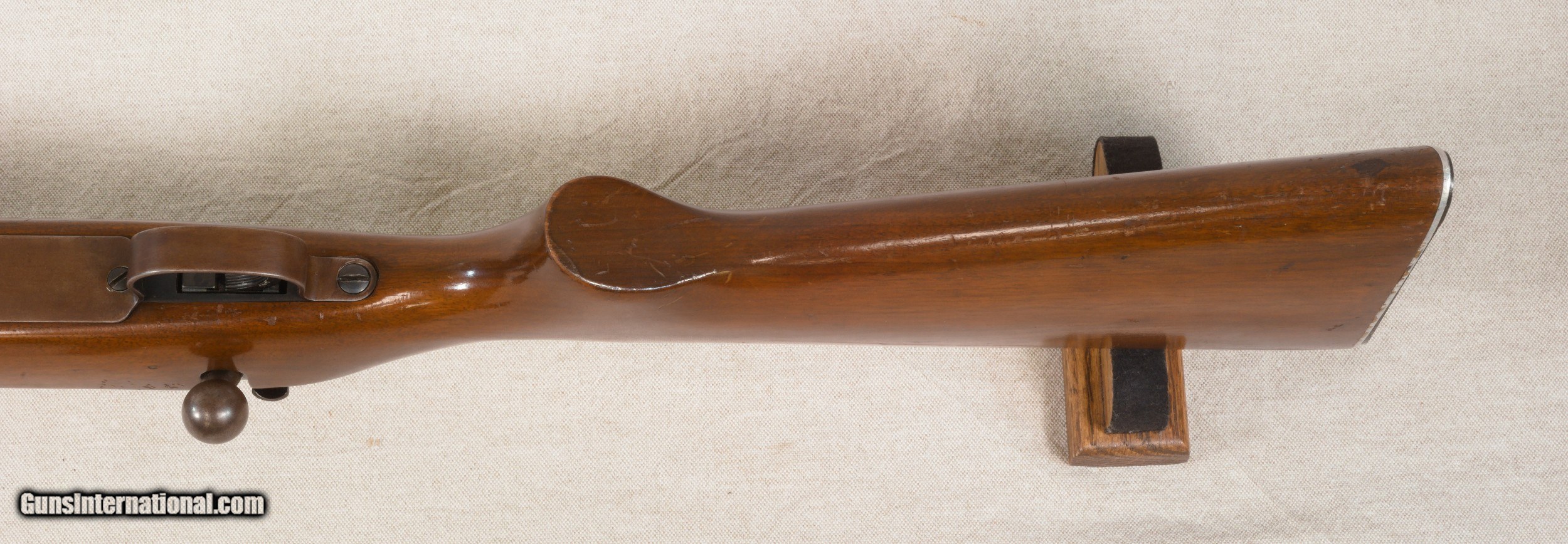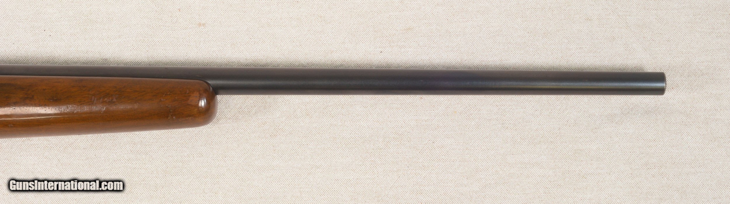 Description: **SALE PENDING** Here we present a Remington Model 722 chambered in .222 Remington caliber. The Model 721 and Model 722 along with the later Model 725 variant are bolt-action sporting rifles manufactured by Remington Arms from 1948 until 1961. The 721/722 replaced the short-lived Model 720. The Model 721/722 is considered to be one of the first modern, economically produced sporting rifles whose design largely continued with the subsequent and highly successful Model 700. Manufactured with high precision, it is known for exceptional accuracy. The bolt and receiver design, based on the Mauser action, is considered one of the strongest ever produced. These rifles have become collectible. The .222 variation was delivered from the factory with a 26 inch barrel, ramped front sight and adjustable rear sight. This rifle appears to have had the barrel shortened to 23 inches as the front sight is missing and the rear sight has been removed. The rifle has some high edge wear and some handling, use and storage marks.....the trigger guard and floorplate have lost much of their original finish. it is in good condition overall. The 23 inch barrel has a very good bore with strong rifling. This fine Remington would make a great varmint getter. PRICE: $495.00 We are Antique & Modern Firearms in Lexington, KY, a dealer of fine firearms since 1974. PH. 859-276-1419 We Buy, Sell, and Trade Firearms & Knives. Have an Individual Firearm, Firearms Collection, or Firearms Estate to sell, let us know, and we can buy or consignment sell it for you. NOTE: No additional fee for a Credit Card payment SOLD Rifle Caliber: .222 Remington Manufacturer: Remington Model: 722 Serial Number: 249403 Barrel Length: 23 inches Condition: Good Metal Condition: Good Wood Condition: Good Bore Condition: Good |