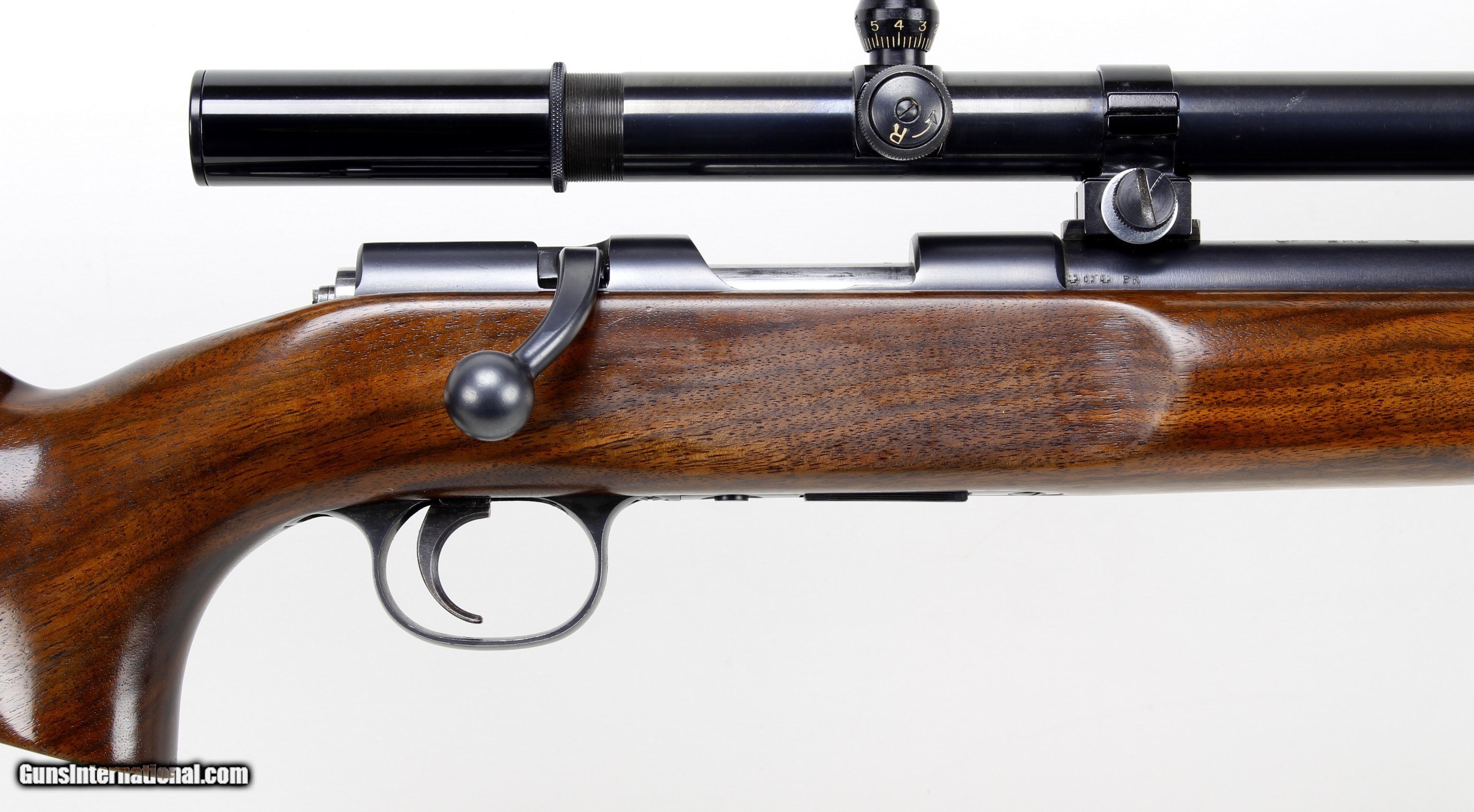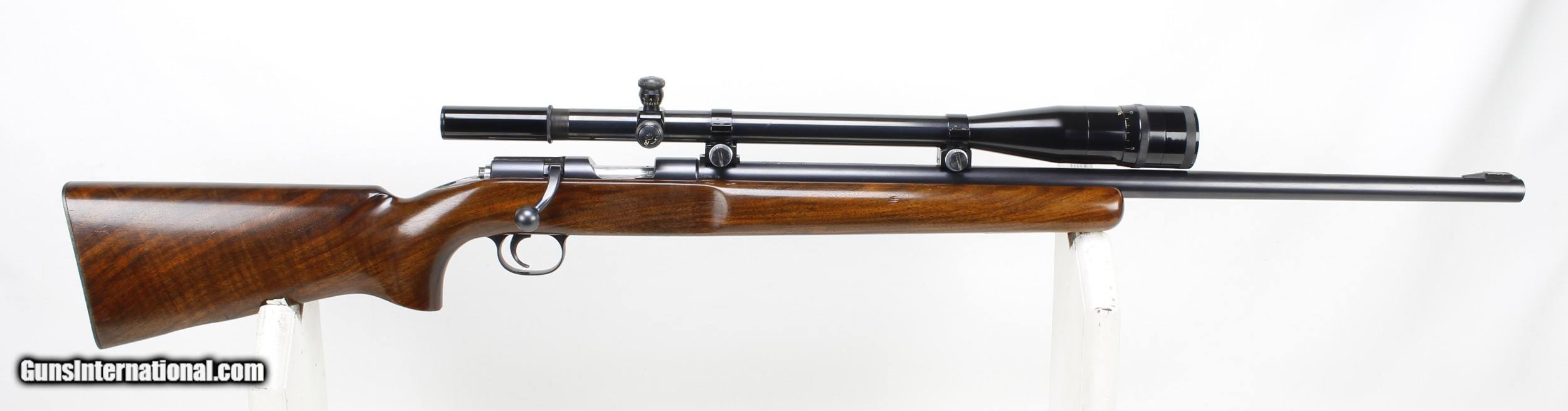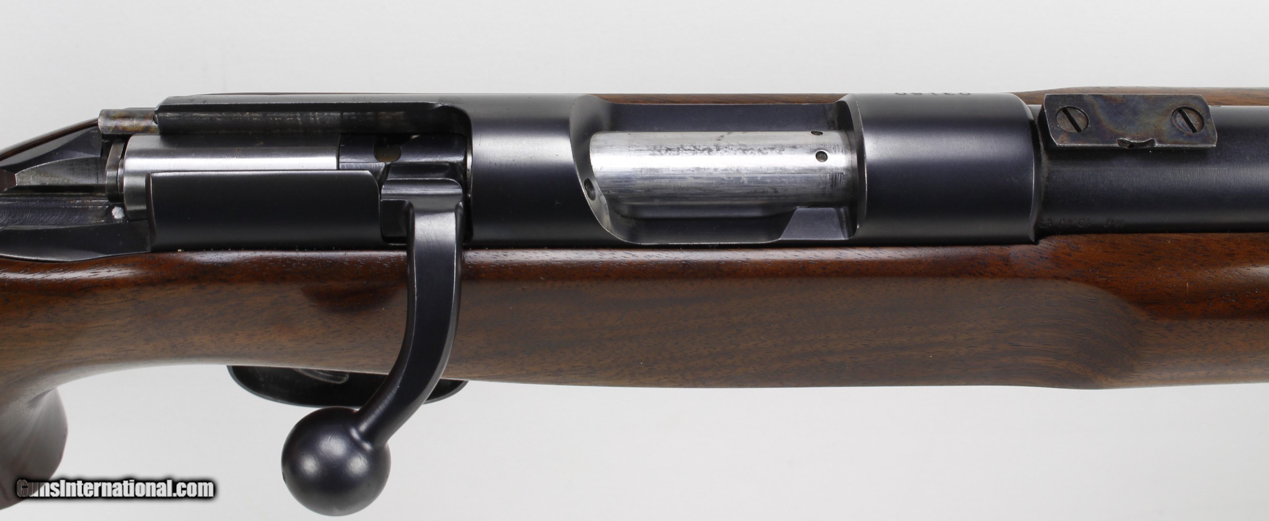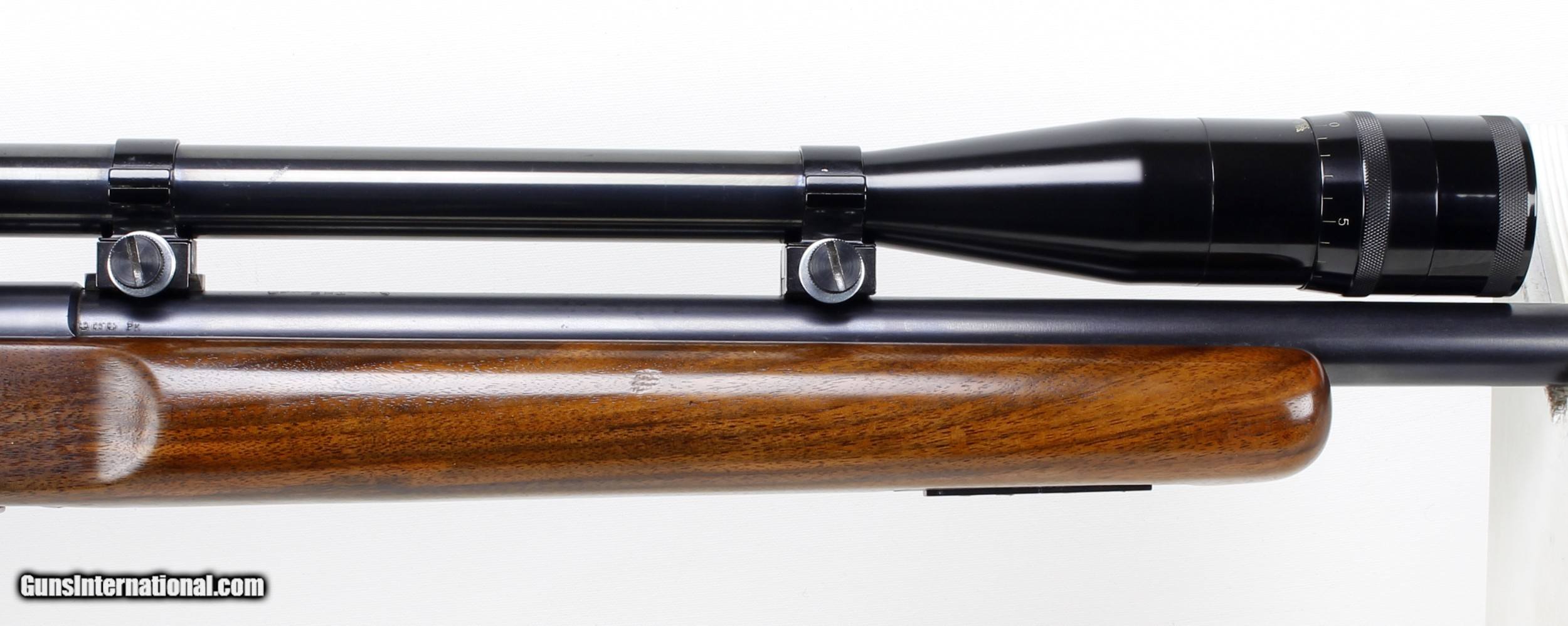 Description: Remington Model 37 Range Master Benchrest Rifle in .22LR. SN #03160. Mfg. in 1941. LOP 13 1/2". 28" Free Floating Heavy Barrel with an excellent bright bore with defined lands and grooves. The blued metal finish is in very good condition, rated at 95%. The solid 1 piece smooth Walnut stock is also in very good condition, rated at 95%. Adjustable trigger. Includes a mounted Redfield 24x Target Scope, BRIGHT VERY GOOD, PK barrel date code. Weight 15 lbs. Trigger Pull 1 3/4 lbs. Ships to Lower 48 W/ Insurance $50.00. SOLD Rifle Caliber: .22 Long Rifle Manufacturer: Remington Model: 37 Serial Number: 03160 Barrel Length: 28 Condition: VG Metal Condition: VG Wood Condition: VG Bore Condition: Excellent LOP: 13 1/2 Manufacture Date: 1941 |
