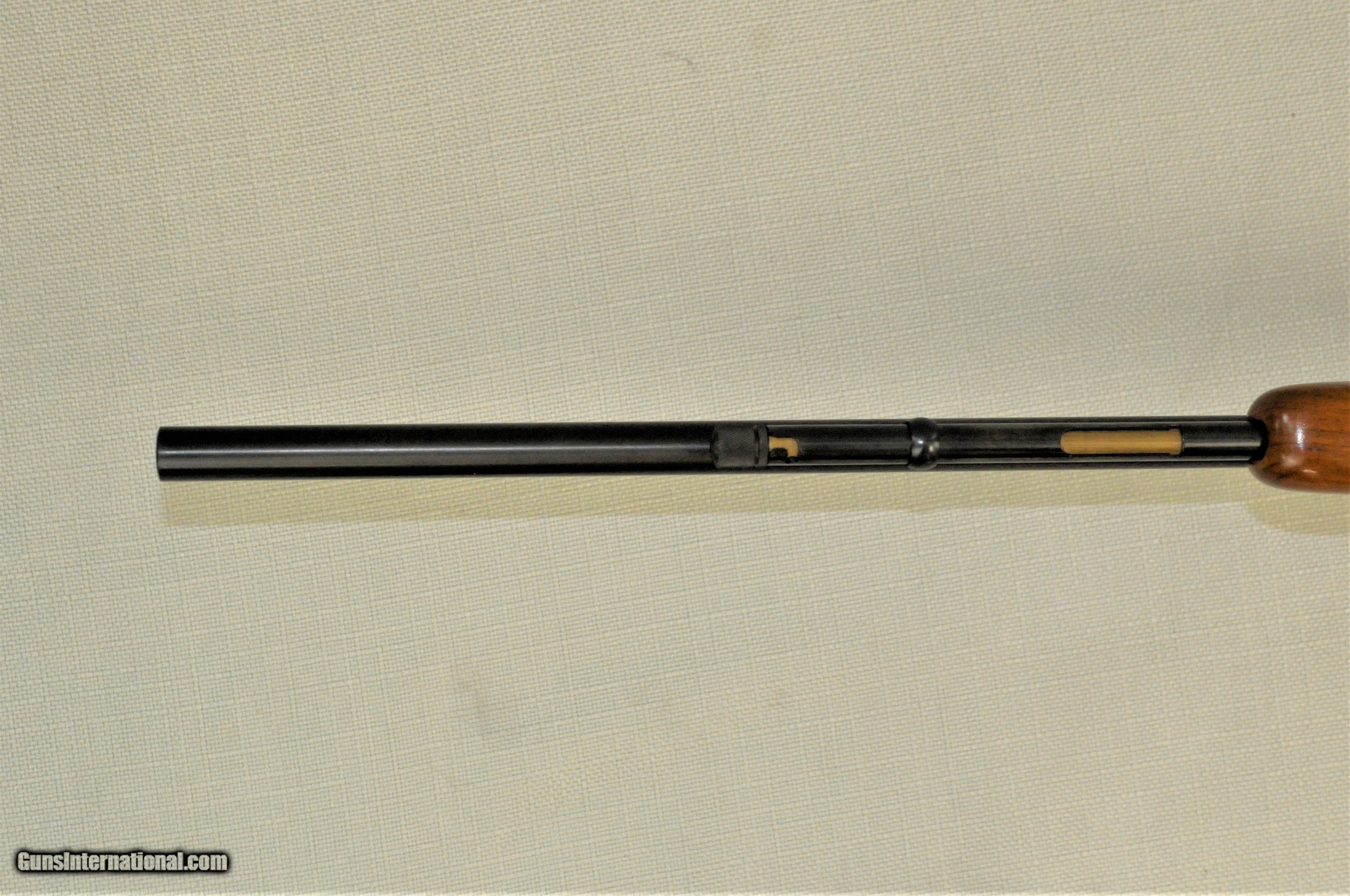 Description: The 5mm Rimfire Magnum cartridge was an idea ahead of it's time. Now-a-days there are all sorts of rimfire magnums outside of the standard .22, but this Remington Model 592 rifle came out in 1970, never really caught on, and was discontinued in 4 short years. The Remington Model 592 was a tube-fed bolt-action repeater with a 24" inch barrel with factory iron sights. The receiver is not factory drilled and tapped but rather grooved for tip-off style scope mounts. This example is in excellent all-original condition with 98% of the factory blue finish remaining and a perfect minty bore. The original Walnut stock has a few minor handling/storage marks in it but nothing major, and is free from any cracks, chips, or repairs. The Remington-branded buttplate and special Remington pistol grip cap are still in place and in excellent condition. All of the controls and functions of this rifle are in 100% perfect working order. This rifle has likely been fired a handful of times at the very most. We have only a partial box of vintage ammo available, but newly manufactured ammo is available for order online elsewhere. If you have been looking for a nice clean un-molested original example of this scarce rifle, here is your chance to get a really nice one. SOLD Manufacturer: Remington Model: 592 Caliber Info: 5mm Rem Mag |