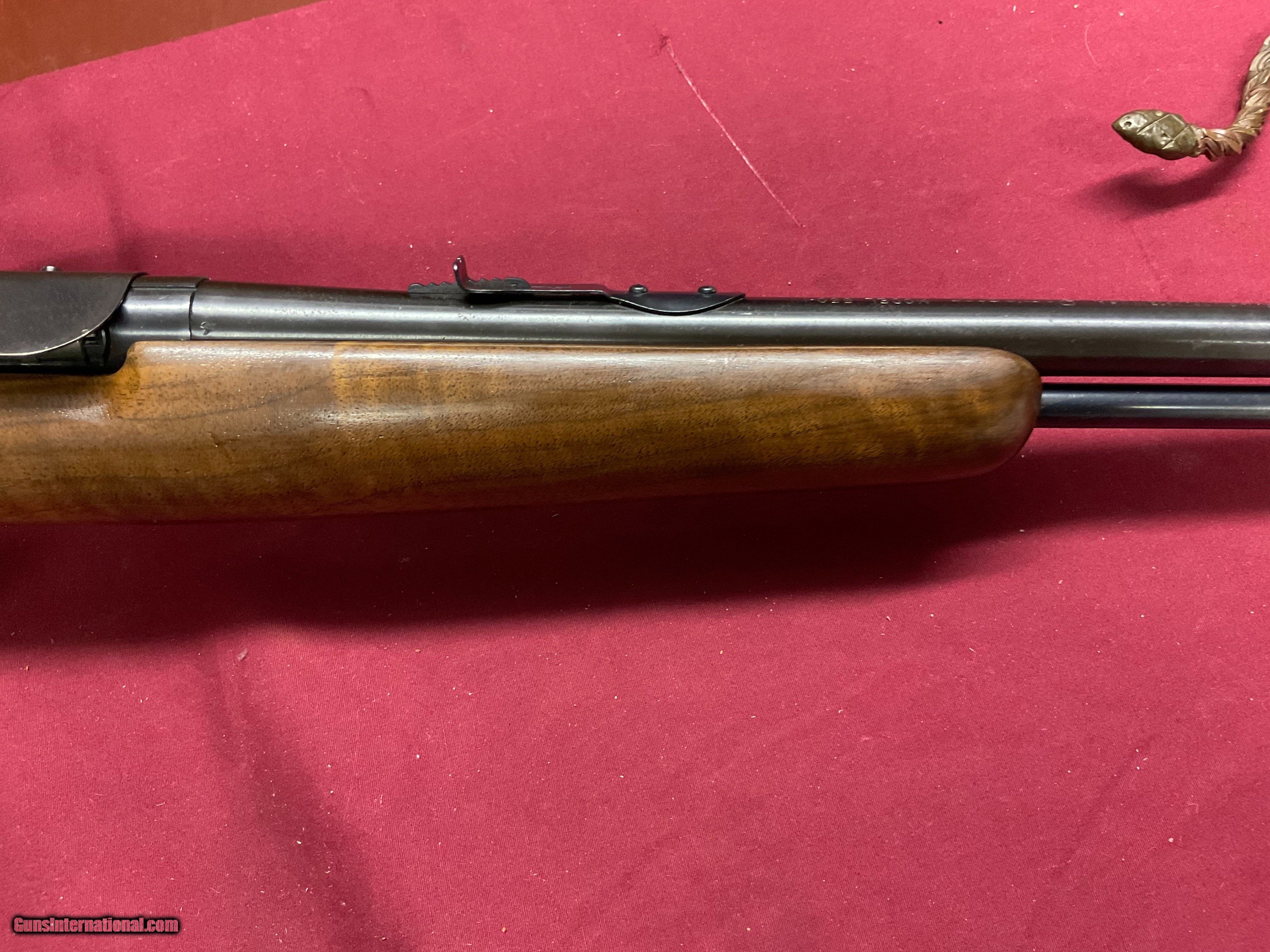 Description: Remington model 550-1, 22 cal. Rifle. Made probably in the 40's, this is one fine gun. Thus is a semi auto, shooting s, l and Lr. Very accurate gun, Remington has forever been known for high quality and high accuracy. We looked inside this gun for dirt, rust, whatever. We found nothing but a clean gun showing no wear we could see! We fired 6 shells through it in a second . 24" barrel with ejector shield,( great for left or right hand shooters) These guns known to not jam. Wood and blueing are excellent! You can't go wrong with this gun. Thanks, Ed By the way, my price will have no buyer fees, taxes, insurance, or shipping and if you want, send it back for refund! SOLD Manufacturer: Remington Model: 550-1 Serial Number: N/A Barrel Length: 24 Condition: Excellent Metal Condition: Excellent Wood Condition: Excellent Bore Condition: Excellent Action: Semi Auto |