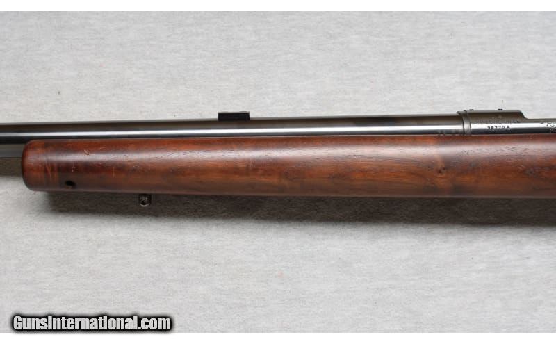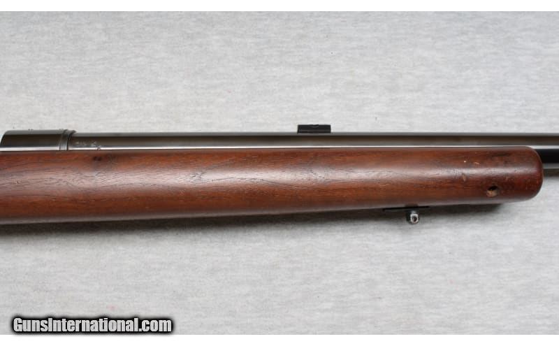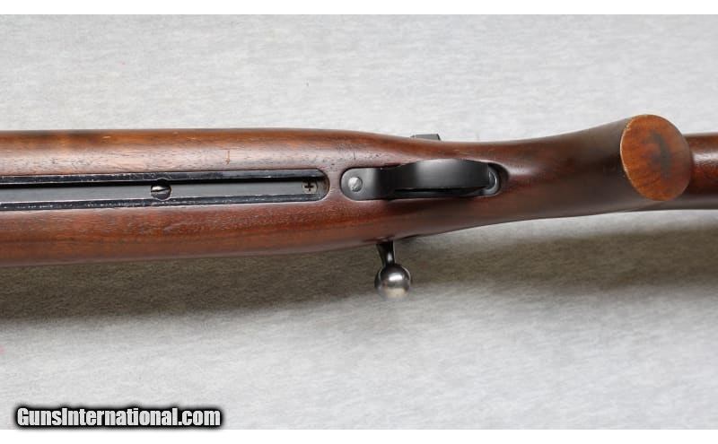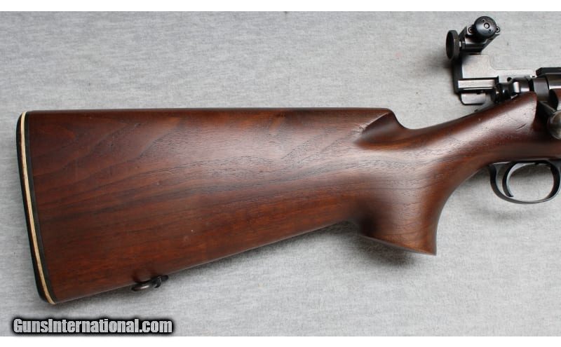 Description: Excellent, light finish wear, small nicks and scratches. U.S. Marked .22 long rifle target rifle, 28" bull barrel, Redfield target sights, target trigger, smooth & slick action. .22 Long Rifle SOLD Chambers: Bolt action Metal Condition: Excellent Wood Condition: Excellent Bore Condition: Bright Barrels: 28 Triggers: Factory Stock Dimensions: 13 1/2" LOP Fore End: Smooth Butt Pad: Factory butt plate Sights: Redfield adjustable target sight Item Location: La Vista, NE |
