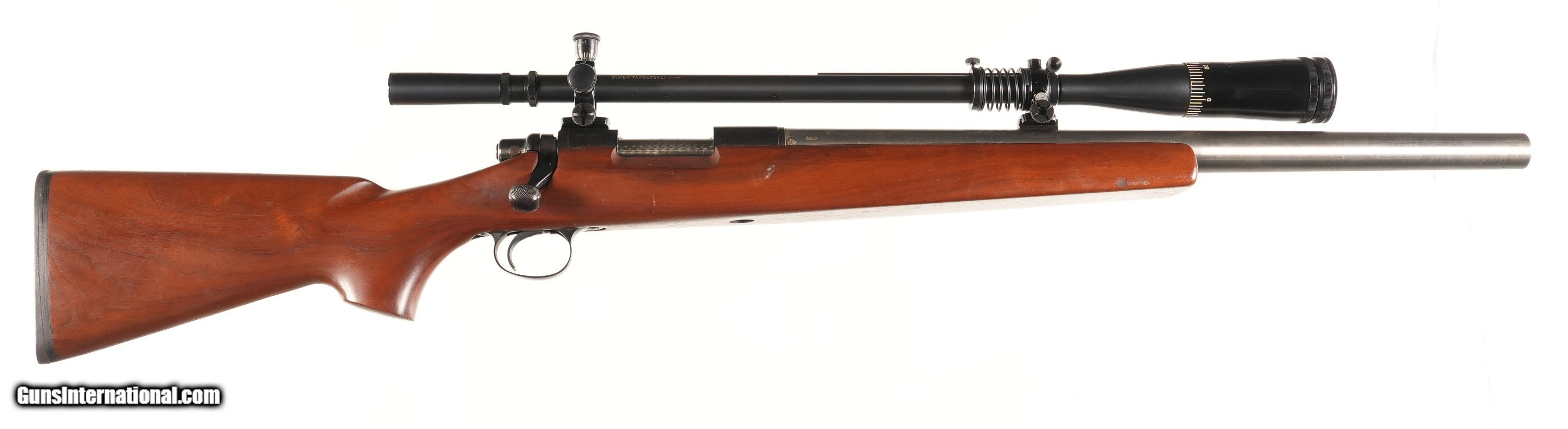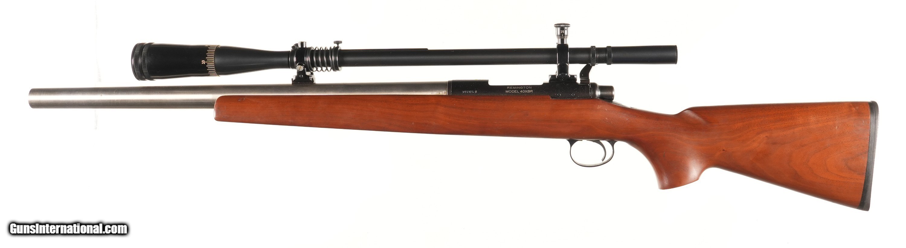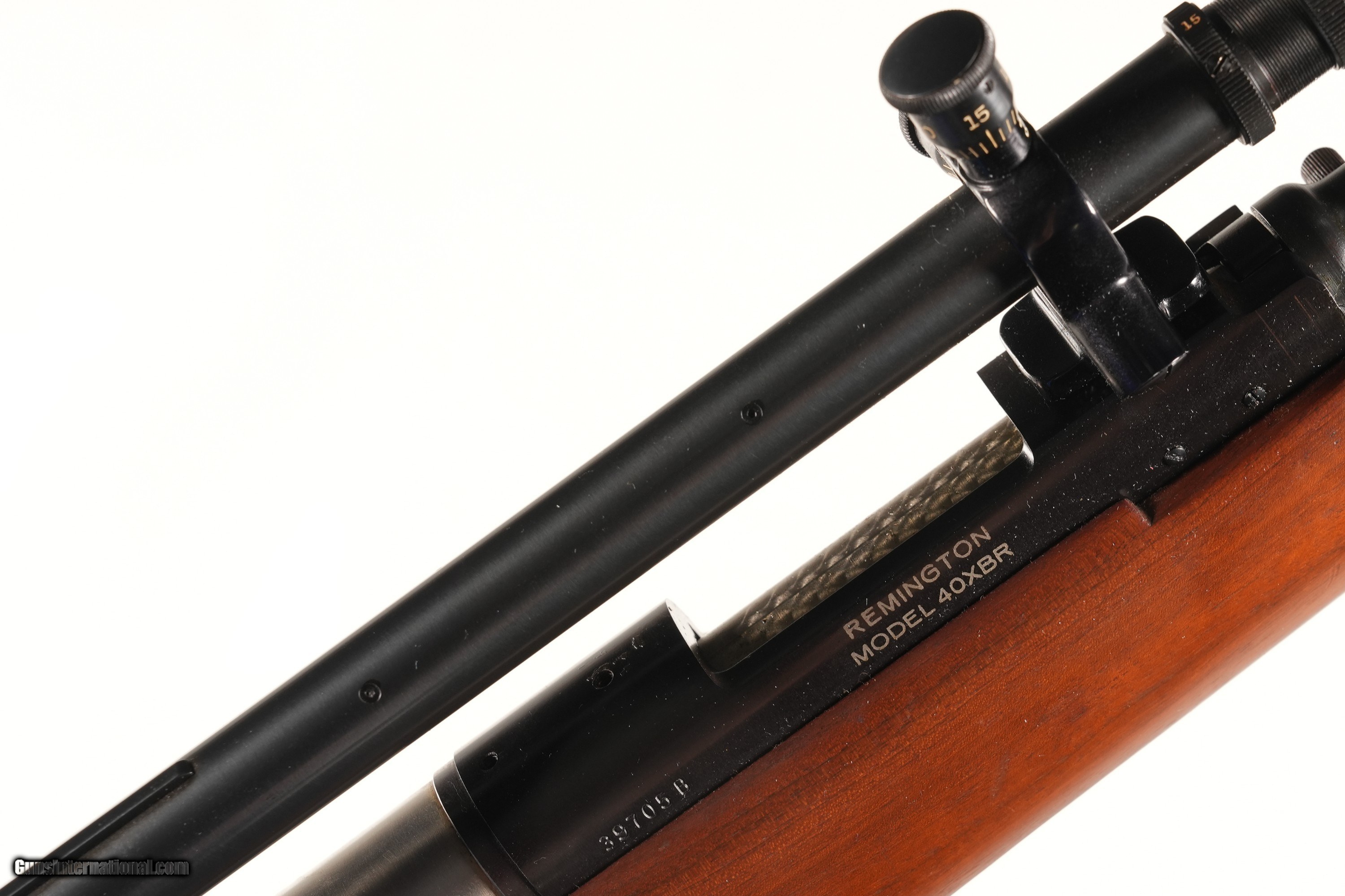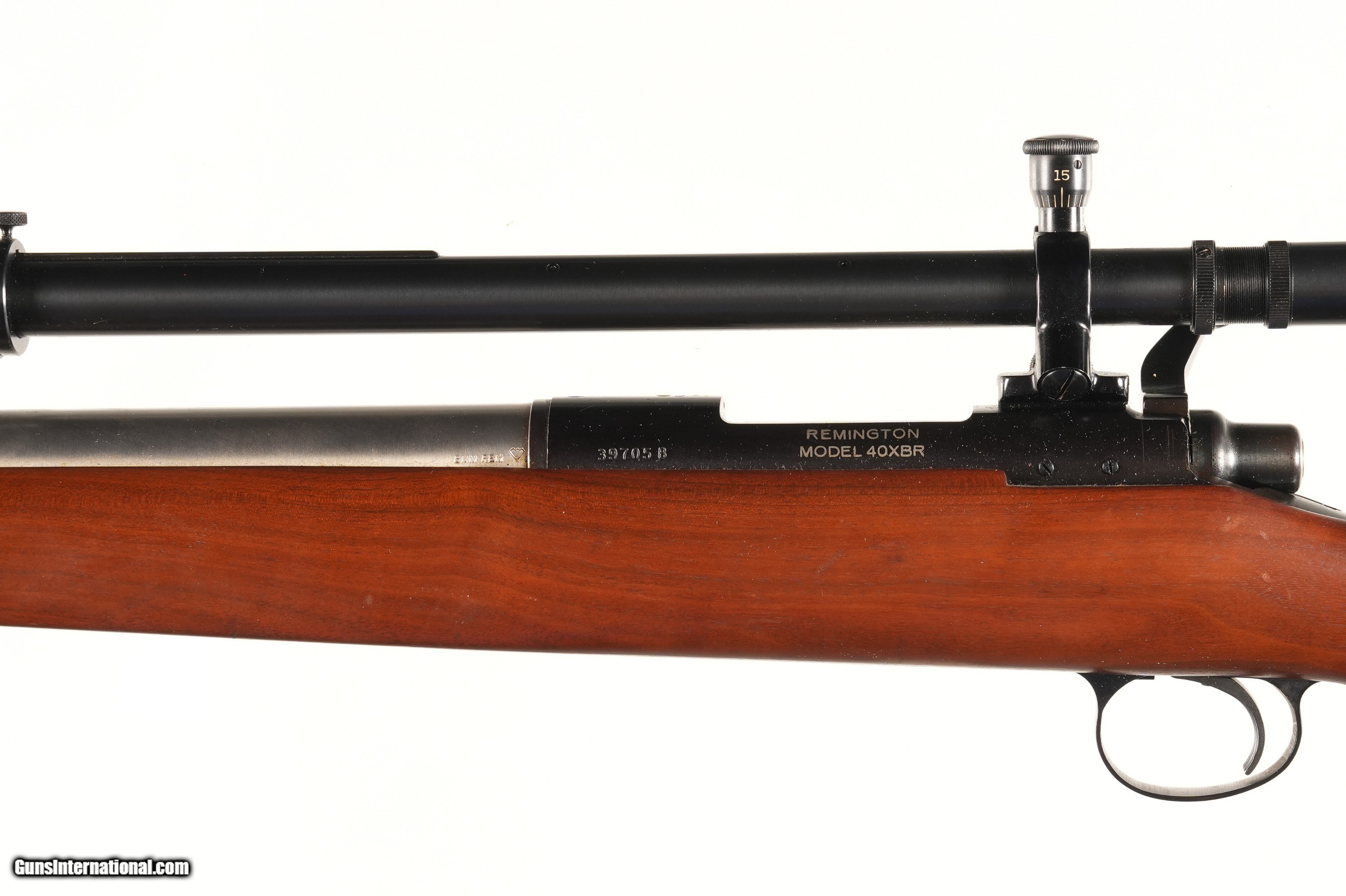 Description: Remington Model 40 XBR cal, 6MM Rem, with 20' factory stainless steel Heavy Bbl, Single shot action with factory adjustable trigger, Factory Bench Rest stock with factory rubber butt pad. Mounted with Lyman Super Target Spot 15 Power externally adjusted scope with screw type lens covers and fine cross hair reticle. Condition, Excellent with bright sharp bore. Metal shows little use. Stock is excellent with some very light impressions. Scope is very clear and remains in excellent condition. Mechanically fine • Free Shipping, No Credit Card Fees. • Lay-a-way available for this firearm. • 1/3 Down, a 1/3 in 30 Days, 1/3 in 60 Days. SOLD Manufacturer: Remington Model: 40X Serial Number: 39705B Barrel Length: 20 |
