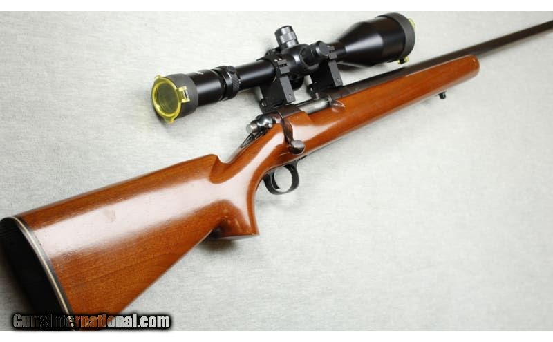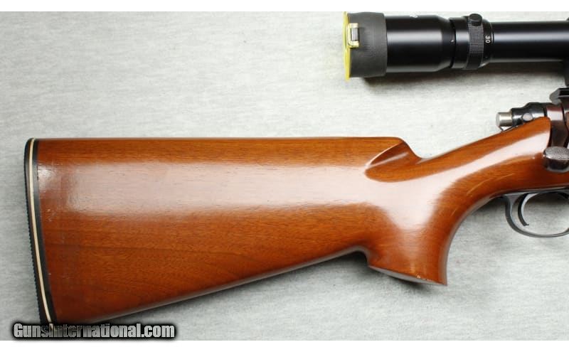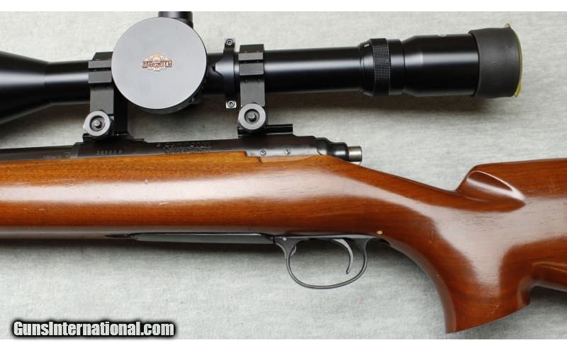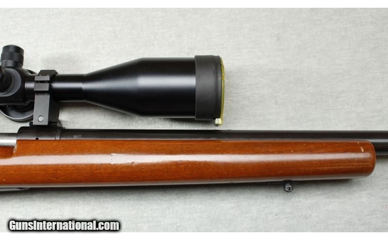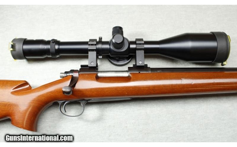 Description: Very good condiiton, light finish wear, small nicks and scratches. Bolt action target rifle, 27" heavy barrel, smooth action and crisp trigger. Smooth wood stock with adjustable forend channel, Tasco Custom Shop 8-40x scope, and factory butt plate. 7.62x51 NATO SOLD Chambers: Bolt action Metal Condition: Very good Wood Condition: Very good Bore Condition: Bright Barrels: 27 Triggers: Factory Stock Dimensions: 13 1/2" LOP Fore End: Smooth Butt Pad: Factory butt plate Sights: Tasco 8-40x scope Item Location: La Vista, NE |