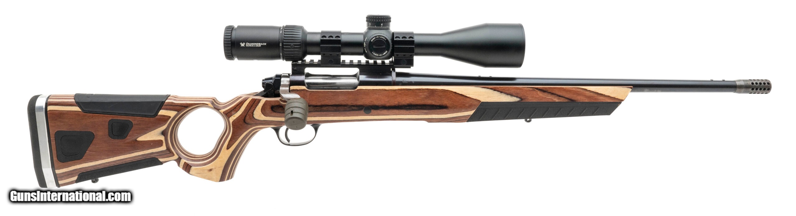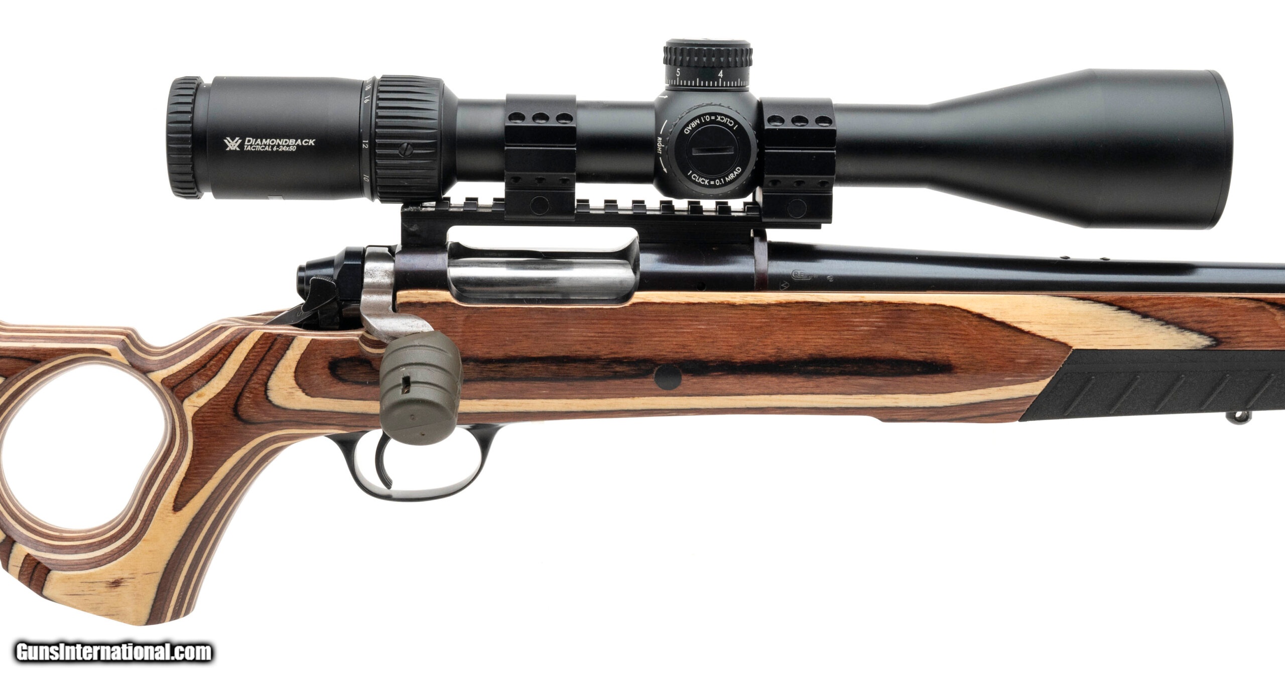 Description: "SN: 6669906, Modern production, .308 Win with a 20"" barrel with muzzle brake. Custom bolt action hunting rilfe with Tactical clamp on bolt knob. Bore, finish, and Laminate wood stock are in excellent condition. Rifle comes with Vortex Diamondback 6-24X50 scope. SOLD |