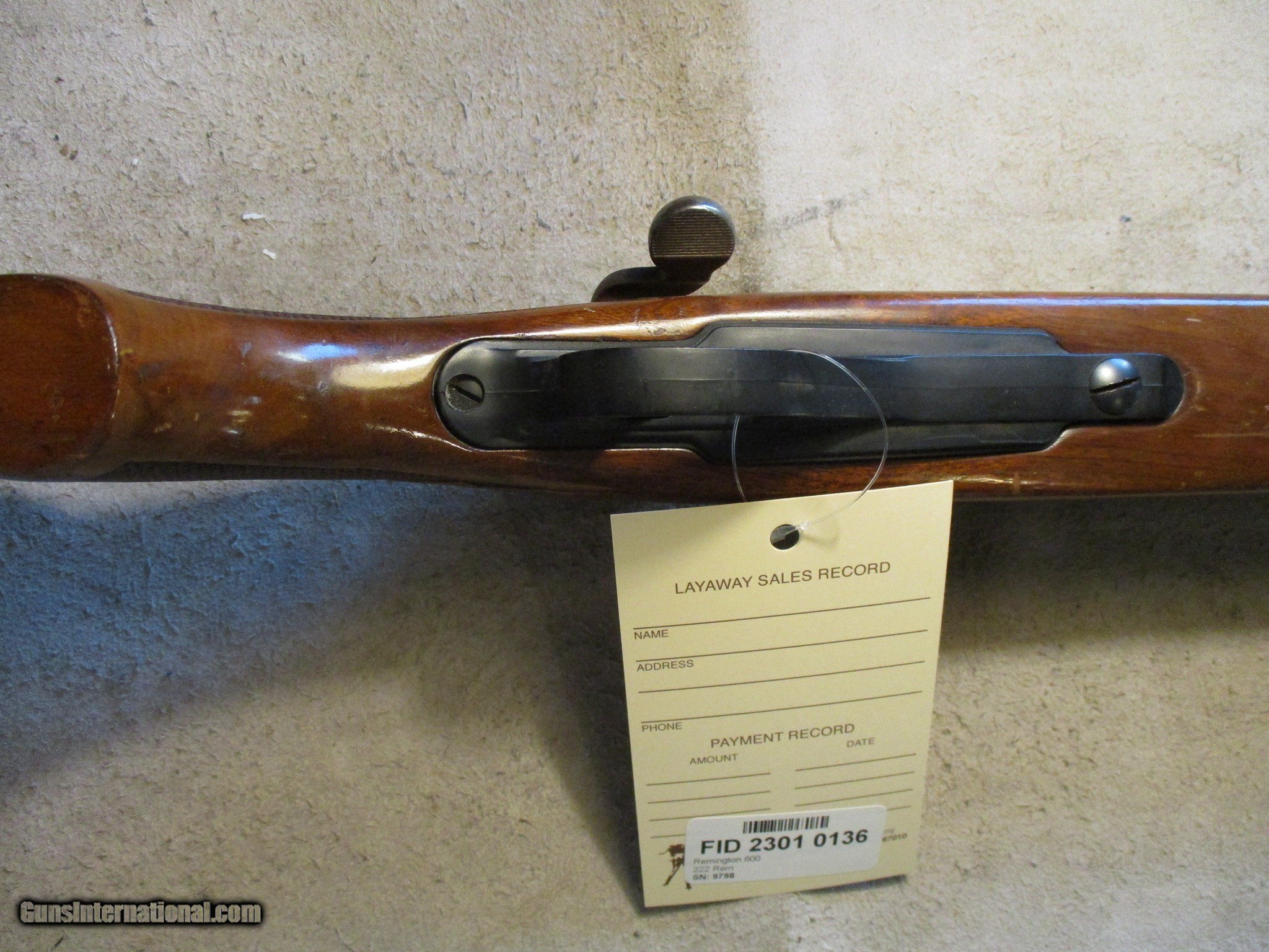 Description: Remington 600, 222 Rem, 19" Vent Rib barrel. SN is 97xx, early gun! Factory finish on both wood and metal, factory butt plate. Perfect bore. Not been shot much. Hard to find gun! We will trade for silver and gold. We accept personal check, any certified funds, Venmo or Zelle. We can also take your credit card, +3%. Email me if you would like these pictures sent to you, they will come through bigger and better than on the listing page here. We do offer Layaway. Our standard terms are 25% down, 90 days. Initial deposit is not refundable. Email me with any questions. Please check your local laws to confirm it is legal to own in your state! Buyer pays $60 shipping and insurance in a brand new PLANO hard case to your FFL in the lower 48. AK, HI or PR is extra. I will ship to California, as long as it is legal, NO PROBLEM! All my guns come with a non-firing, 3 day unconditional return privilege, from the day UPS delivers to your dealer. Buyer pays shipping both ways if the gun comes back. Please make sure to make it to your FFL to inspect within the 3 days. I am a licensed FFL, and will include a copy of my FFL with the gun for your dealer’s records. I will ship to a C&R if the gun is eligible. I will ship to California, but you need to confirm the gun is legal where you are, California or other. WE BUY AND CONSIGN GUNS AND GUN COLLECTIONS! We will travel to pick up collections! I am always looking for good clean, old original Winchesters to buy, consign, or trade, especially Pre '64's model 70's and model 54's. WE ALSO TRADE FOR CLASSIC CARS AND TRUCKS! We also trade for gold and silver. SOLD Rifle Caliber: .222 Remington Manufacturer: Remington Model: 600 Barrel Length: 19 Condition: Used |