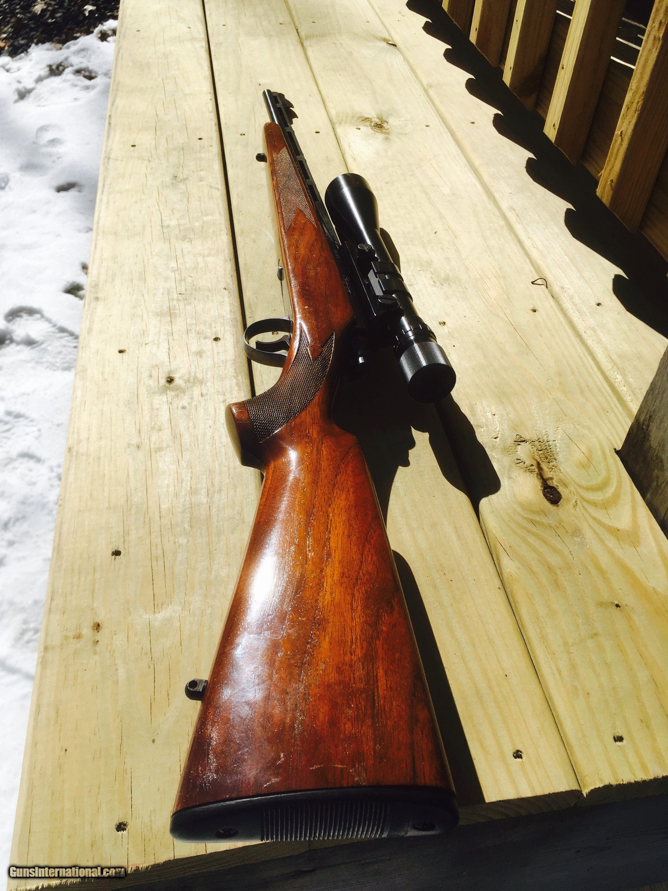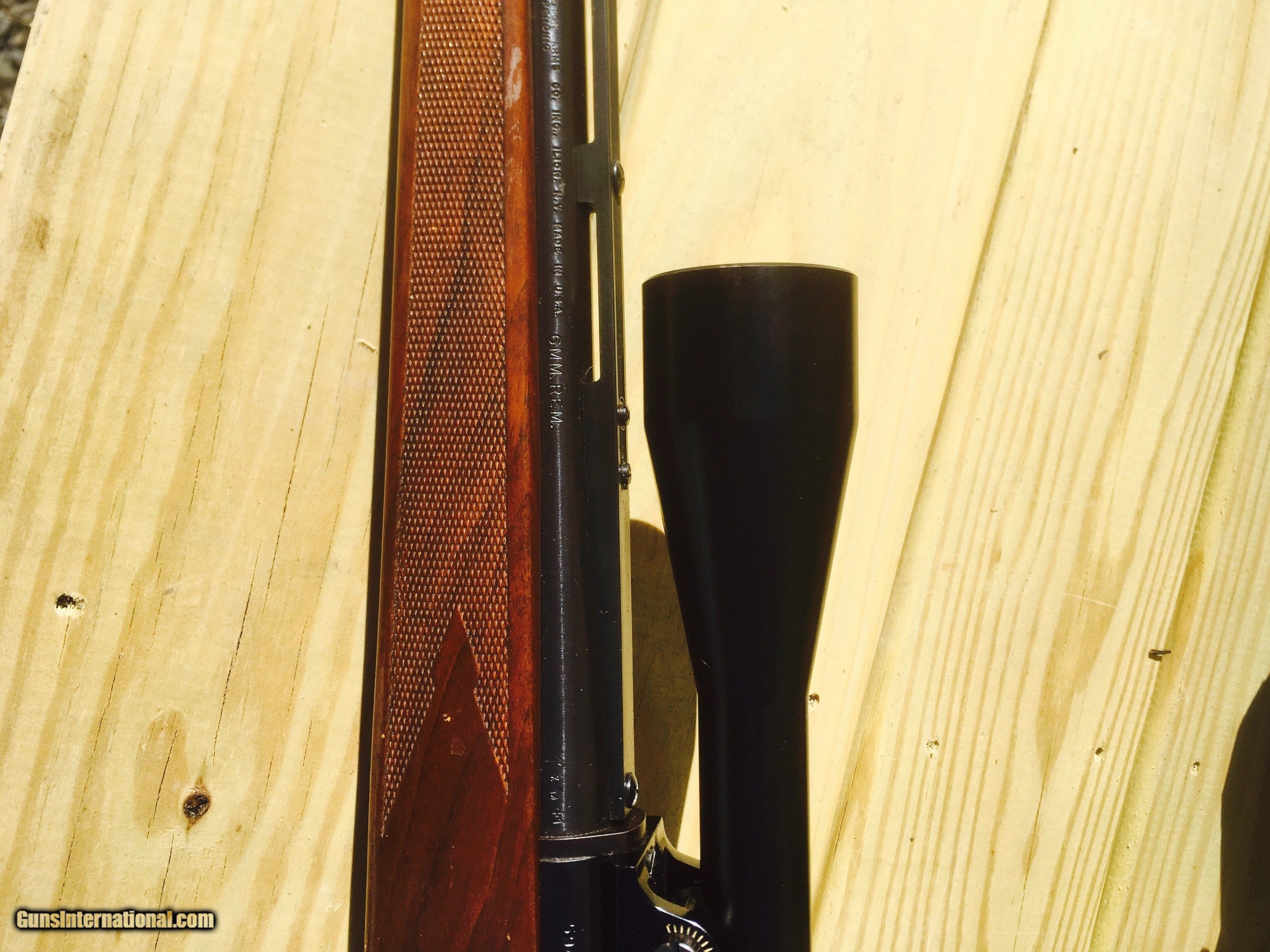 Description: Here's a nice Remington 600 Vent rib .6mm with a Period Correct Balvar 8A 2.5 X 8 with a cross hair reticle that is crystal clear. The metal is very good with no rust or pitting. It has an aftermarket trigger guard. The bore is excellent. The wood has handling marks, nothing deep in the wood. It's missing the rear sight. Please ask questions prior to purchasing. Please make sure that your FFL Dealer will accept this weapon from a NON FFL DEALER. Cashiers Check will be the method of payment. SOLD |
